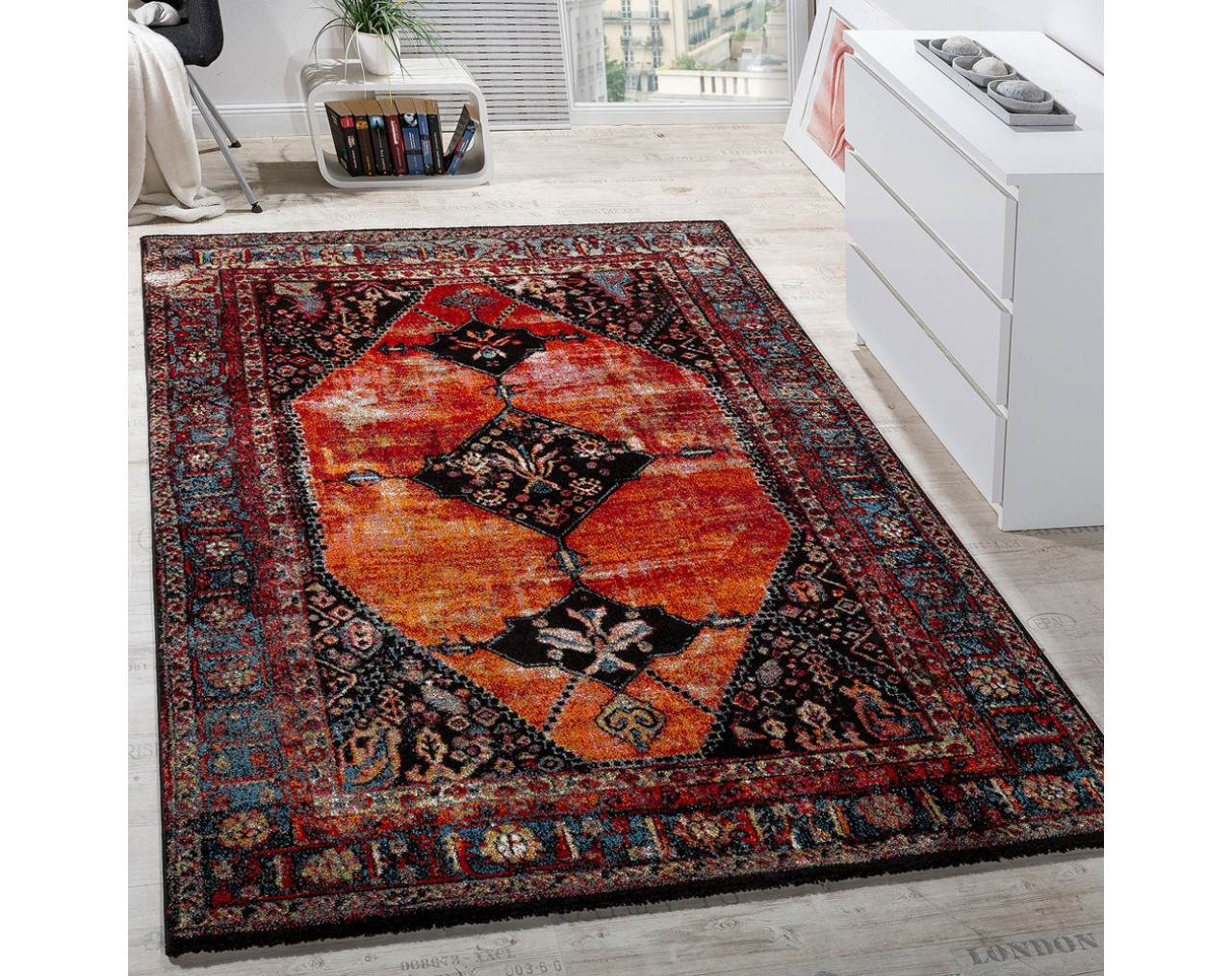 Entdecke den Zauber des Orients mit diesem prächtigen Teppich. Mit seinem filigranen und detailreichen Muster bringt er einen Hauch von Tausendundeiner Nacht in dein Zuhause. Seine warmen Farbtöne setzen gekonnt Akzente, während die melierte Oberfläche den beliebten Vintage-Look unterstreicht. Egal ob du ein modernes oder klassisches Wohnambiente bevorzugst - dieser Teppich fügt sich perfekt ein und spiegelt deine Liebe zu Reisen und exotischen Traditionen wider. Deine Füße werden die besondere Schwere von circa 3.000 Gramm pro Quadratmeter zu schätzen wissen und auch die Fußbodenheizung ist kein Problem. Stell dir vor, wie dieser Teppich als behagliche Insel in deinem Wohnraum dient. Seine Farben und Muster ziehen alle Blicke auf sich, also halte die restliche Einrichtung neutral, um ein harmonisches Gesamtbild zu schaffen.