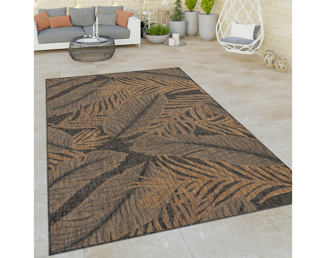 Lass dich auf eine Reise in ein tropisches Paradies entführen, ohne dabei dein Zuhause zu verlassen. Mit unseren Teppichen bringst du ein Hauch von Exotik und Natur in deine Räumlichkeiten. Das dezente Blättermuster sorgt für eine entspannte Atmosphäre und ist dabei so vielseitig, dass es in jedes Interieur passt. Wähle zwischen den Farben Beige und Natur, um deinen persönlichen Stil zu unterstreichen. Doch diese Teppiche können nicht nur in deinen vier Wänden für Entspannung sorgen - sie sind auch ideal für den Außenbereich geeignet. Stell dir vor, wie du auf deiner Terrasse oder deinem Balkon die frische Luft genießt, während deine Füße auf dem weichen Teppich ruhen. Sie sind nicht nur ein Hingucker, sondern auch besonders robust und langlebig. Egal, ob im lebhaften Flur oder im gemütlichen Wohnzimmer - diese Teppiche behalten ihre Schönheit und Qualität. Gönn dir ein bisschen Luxus, der nicht nur deinen Augen, sondern auch deinem Wohlbefinden gut tut.
