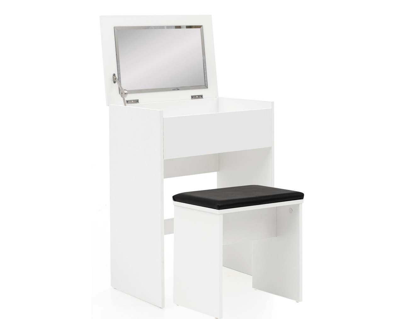 FineBuy Schminktisch FB51641 60x81x40 cm Weiß Konsolentisch Holz Modern, Kosmetiktisch mit Hocker und Spiegel, Weißer Frisiertisch mit Klappfach, Moderner Make-Up-Tisch Mädchen Groß