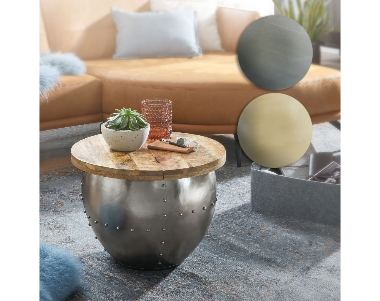 FineBuy Couchtisch Mango Massivholz / Metall 60x43x60 cm Industrial Style Rund, Design Wohnzimmertisch mit Stauraum, Moderner Loungetisch Sofatisch