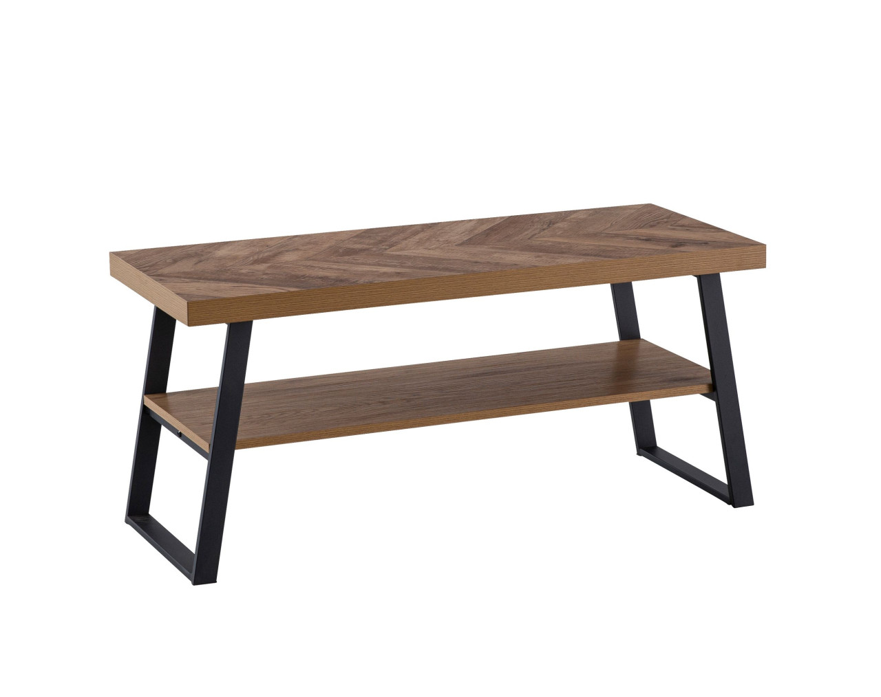 Design Schlichte Sitzbank in modernem Design Sitzfläche mit tollem Fischgrät-Muster Praktische Ablage für Schuhe unterhalb der Sitzfläche Abmessungen Breite: 100 cm Höhe: 41 cm Tiefe: 40 cm Sitzhöhe: 41 cm Ablagefach (BxHxT): 93 x 19,5 x 32,5 cm Materialstärke Sitzfläche: 4 cm Farbe Sitzfläche und Ablagefläche: Braun Beine: Schwarz Besonderheiten Fester und stabiler Stand dank des robusten Metallgestells Anti-Rutsch-Noppen an den Beinen schützen Deinen Fußboden und das Metall vor unschönen Kratzern Schuhe finden im Fach unter der Sitzfläche und unterhalb des Fachs ihren Platz Empfohlene max. Belastbarkeit: 75 kg Material Sitzfläche: foliertes MDF in Eiche-Optik Beine: pulverbeschichtetes Eisen Lieferumfang Eine Sitzbank ohne Dekoration Montageanleitung und -material liegen der Lieferung bei Montage Lieferzustand: demontiert und sicher verpackt Pflegehinweise Die Oberfläche mit einem lauwarm angefeuchteten Baumwolltuch reinigen. Keine Scheuermittel, scharfe Reinigungsmittel oder tropfnasse Tücher verwenden.
