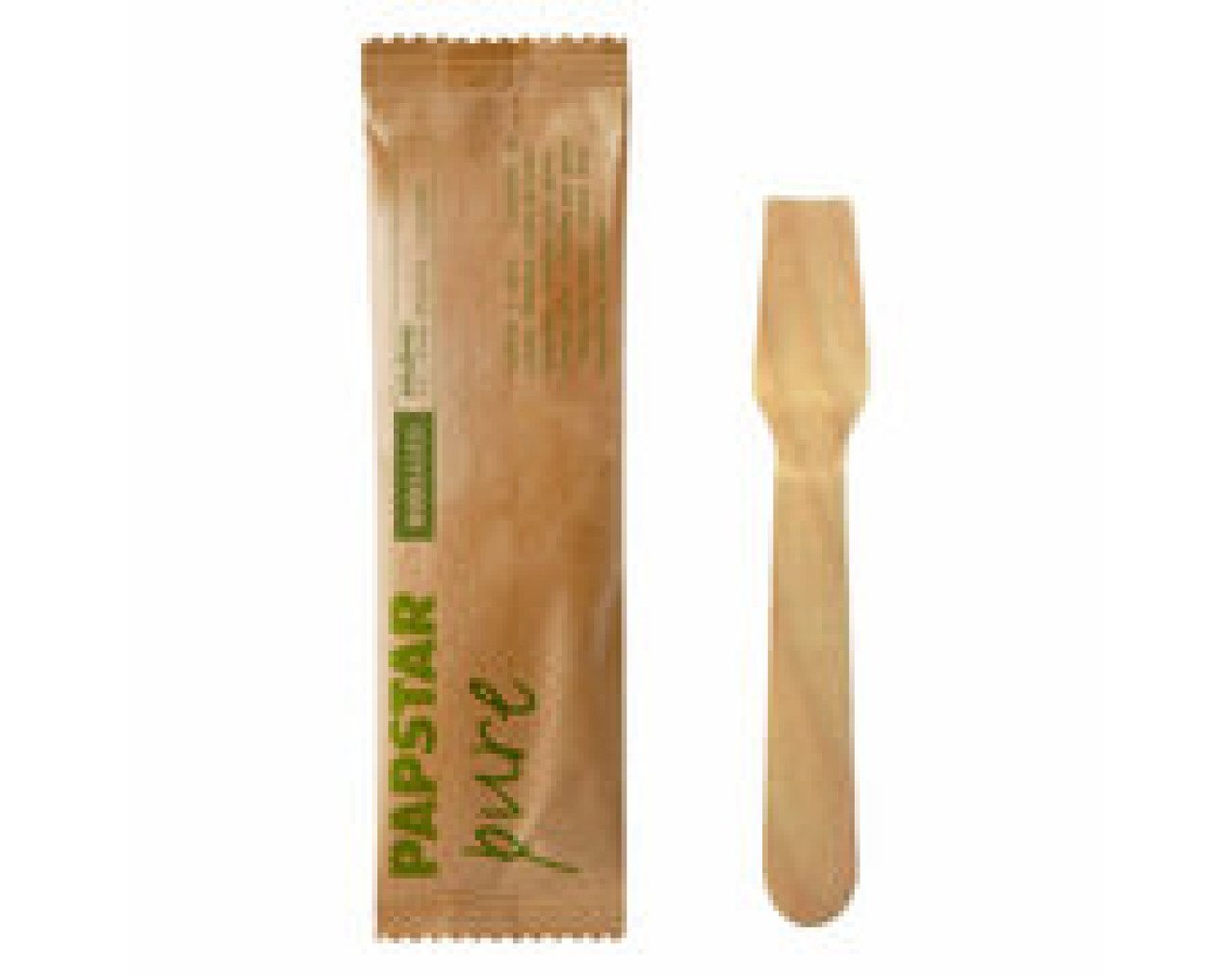 PAPSTAR Eislöffel aus Holz 9,4 cm einzeln verpackt in Papierbeutel, 50 Stk.