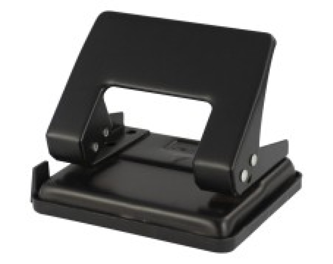 Premium Bürolocher mit Anschlagschiene für 20 Blatt Metallgehäuse, schwarz