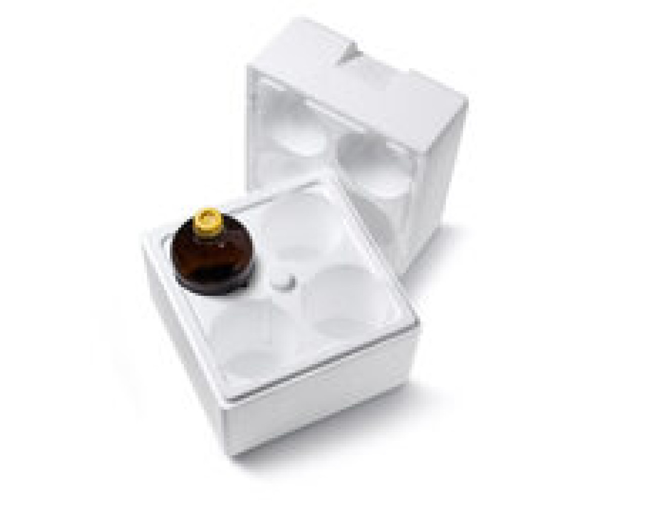 Die Sicherheitsboxen (S-Boxen) aus StyroporR eignen sich für den Transport von eckigen und runden Glasflaschen. -StyroporR ist besonders leicht. -Es besteht zu 98 % aus Luft, nur 2 % macht das Grundmaterial Polystyrol aus -Durch das geringe Gewicht werden Transportkosten eingespart -StyroporR verfügt über ausgezeichnete Isoliereigenschaften gegen Wärme und Kälte -Es besitzt eine Wärmeformbeständigkeit bis +80°C. Außerdem ist es beständig gegen Nässe und saugt keine Feuchtigkeit auf -Es ist dadurch besonders hygienisch, denn es bietet keinen Nährboden für Mikroorganismen -Dies macht es hervorragend geeignet für den Transport von pharmazeutischen Produkten. -Zu den weiteren Eigenschaften von StyroporR gehört, dass es formstabil, widerstandsfähig und elastisch sowie druck- und stoßfest ist. -Die Struktur des Schaumstoffs gibt bei Stürzen nach und fängt so die Erschütterung durch einen Aufprall auf. -Da die Boxen wiederverwendet werden können, sind sie zudem besonders umweltfreundlich und kosteneffizient. -Die Flasche ist nicht im Lieferumfang enthalten. Produkteigenschaften -Flaschendurchmesser: 139 Millimeter -Flaschenhöhe incl. Verschluss: 300 Millimeter -BAM-Zulassung: BAM 8097/4H1 -Länge: 380 Millimeter -Breite: 360 Millimeter -Höhe: 360 Millimeter