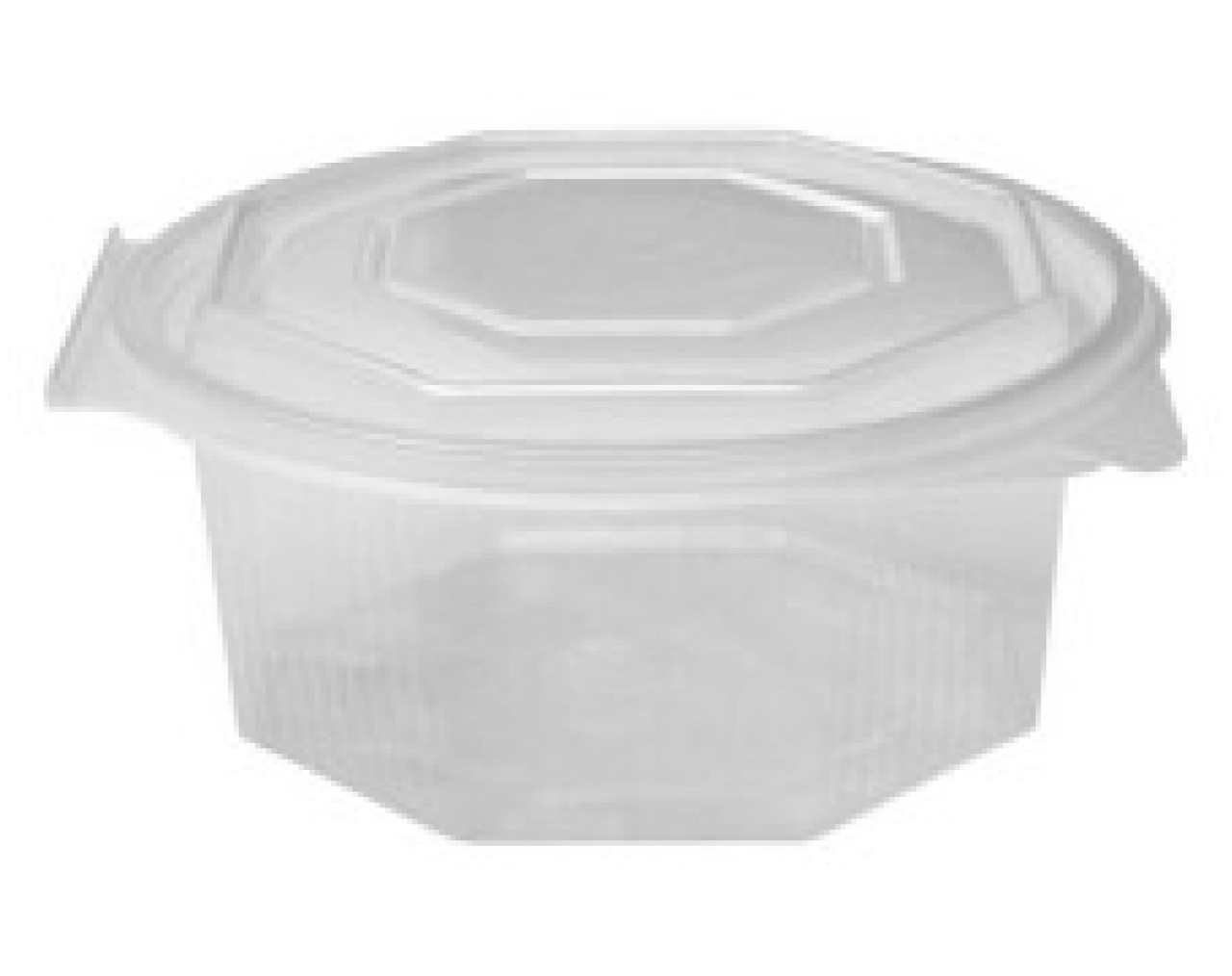 Achteckbecher klar mit angehängtem Deckel 750 ml (PP), 50 Stk.