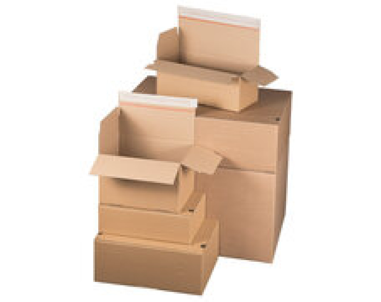 -Fix-Aufrichtekarton mit Automatikboden -aus stabiler Wellpappe, braun -rationelles Handling und schnelles Aufrichten -Aufreißfaden und Selbstklebeverschluss -Außenmaß: (Länge x Breite x Höhe) ca.: 305x215x97mm -Material: 1.20B KLS N2 (B-Welle) -Gewicht ca. 190 gr.