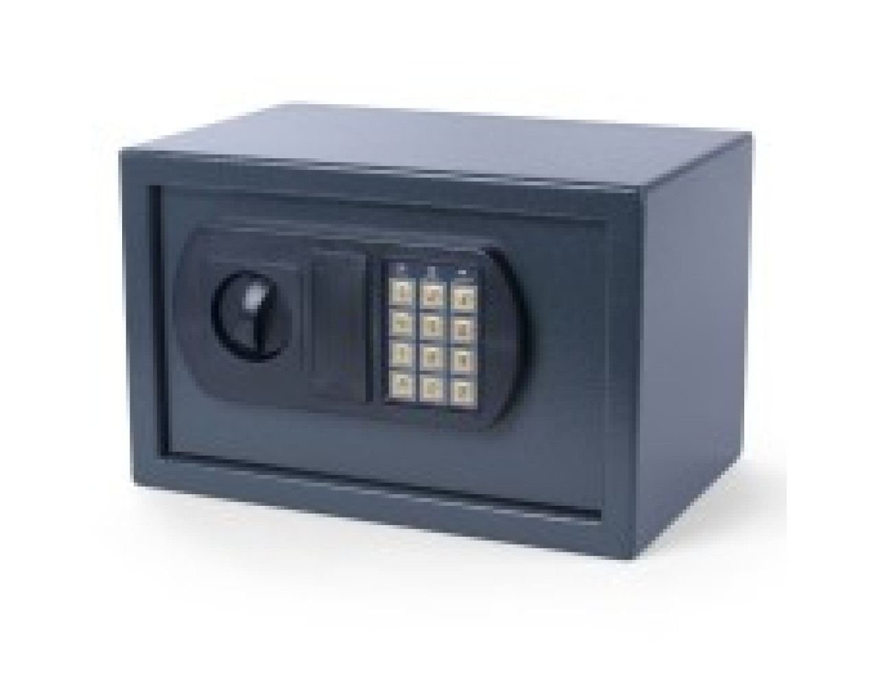 Sicherheitstresor mit Elektronikschloss und zwei Schlüsseln zur Notöffnung Dieser robuste Safe kann mit der Eingabe einer frei wählbaren Zahlenkombination oder mit einem der beiden beiliegendem Notschlüsseln geöffnet werden. -Robuste Stahlkonstruktion -Freiwählbarer Sicherheitscode -Doppelbolzen Verschlusssystem -Teppichfläche im Inneren um Kratzer zu vermeiden -inklusive 2 Schrauben zur Befestigung -Türstärke 4 mm -Farbe: anthrazit -Maße: 310 x 200 x 200 mm -Gewicht: 6,0kg -benötigt 4 AA Batterien (nicht im Lieferumfang enthalten) -WEEE-Reg.-Nr. DE32265825 -Lieferumfang: Metallbetondübel, Bodenvliesmatte, 2 Notfallschlüssel