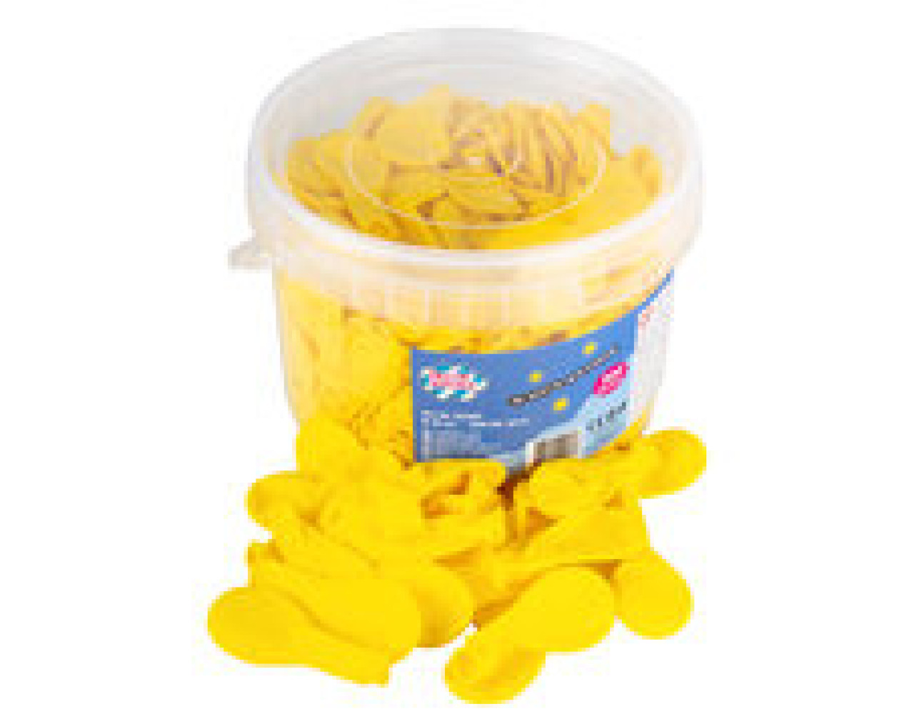 -Durchmesser: O18cm -Farbe: Gelb -Material: Naturkautschuklatex -Verpackung: transparenter Plastikeimer -Luft- und Heliumfüllung möglich (Helium entweicht schneller) -Verwendung durch Kinder unter 8 Jahren nur unter Aufsicht von Erwachsenen erlaubt -Bitte beachten Sie die Warnhinweise auf der Verpackung