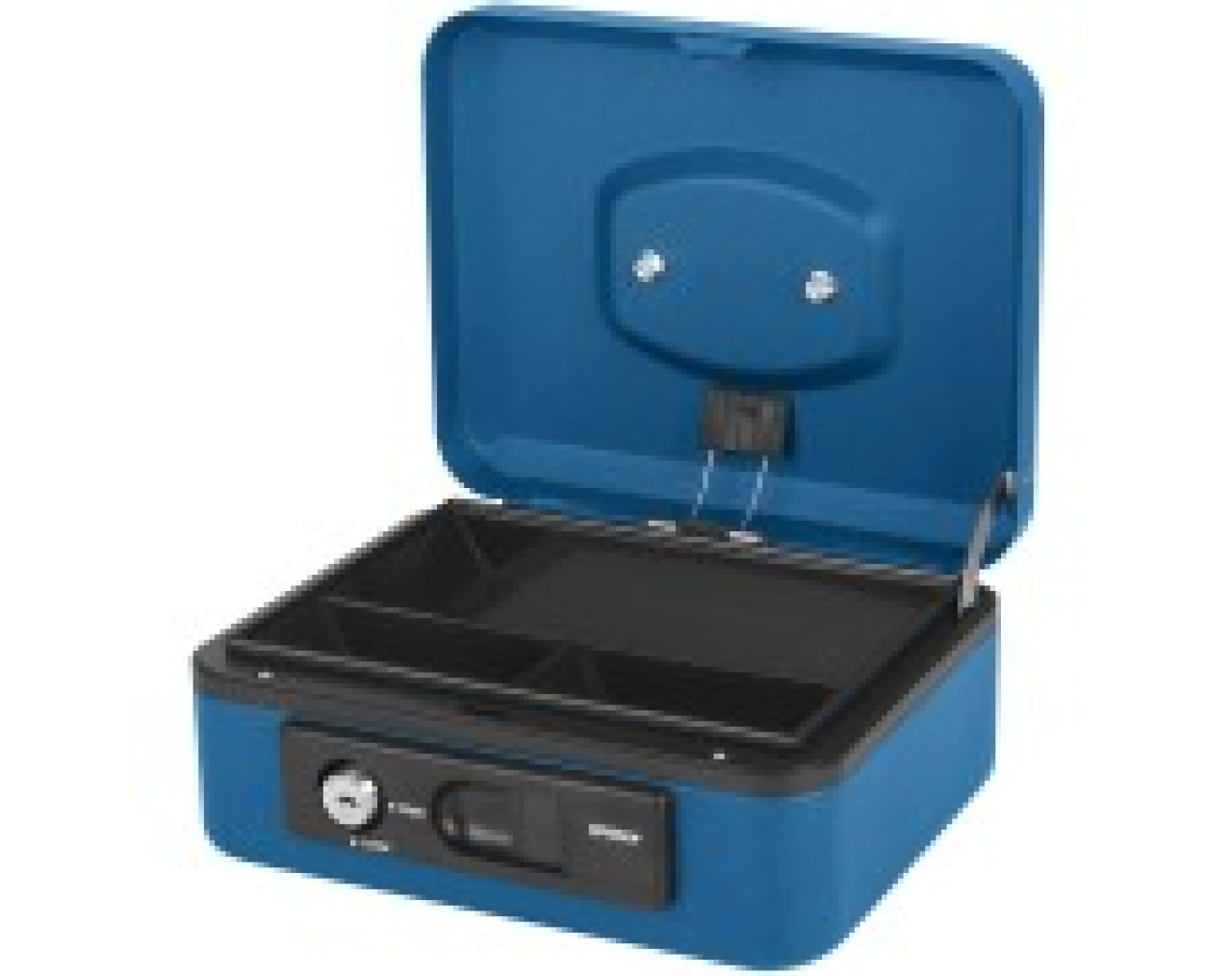 Deluxe Geldkassette mit praktischer Öffnungsfunktion 200mm, blau