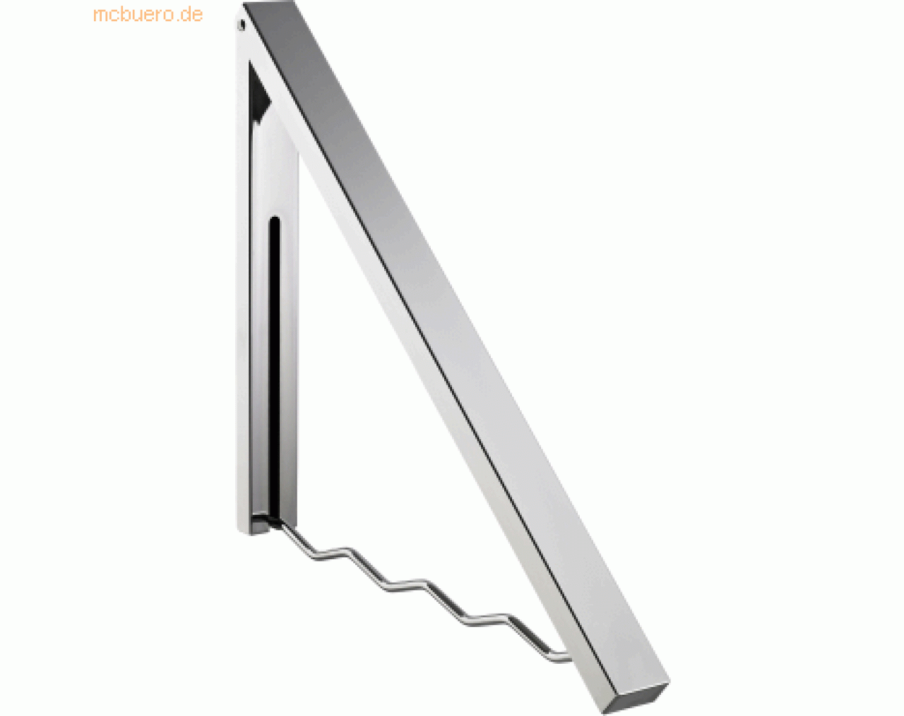 Aus Metall, verchromt; bei Nichtgebrauch zusammenklappbar; Größe zusammengeklappt: 4 x 2 x 55 cm (B x T x H), Größe: 4 x 43 x 37,5 cm (B x T x H); Farbe: silber;