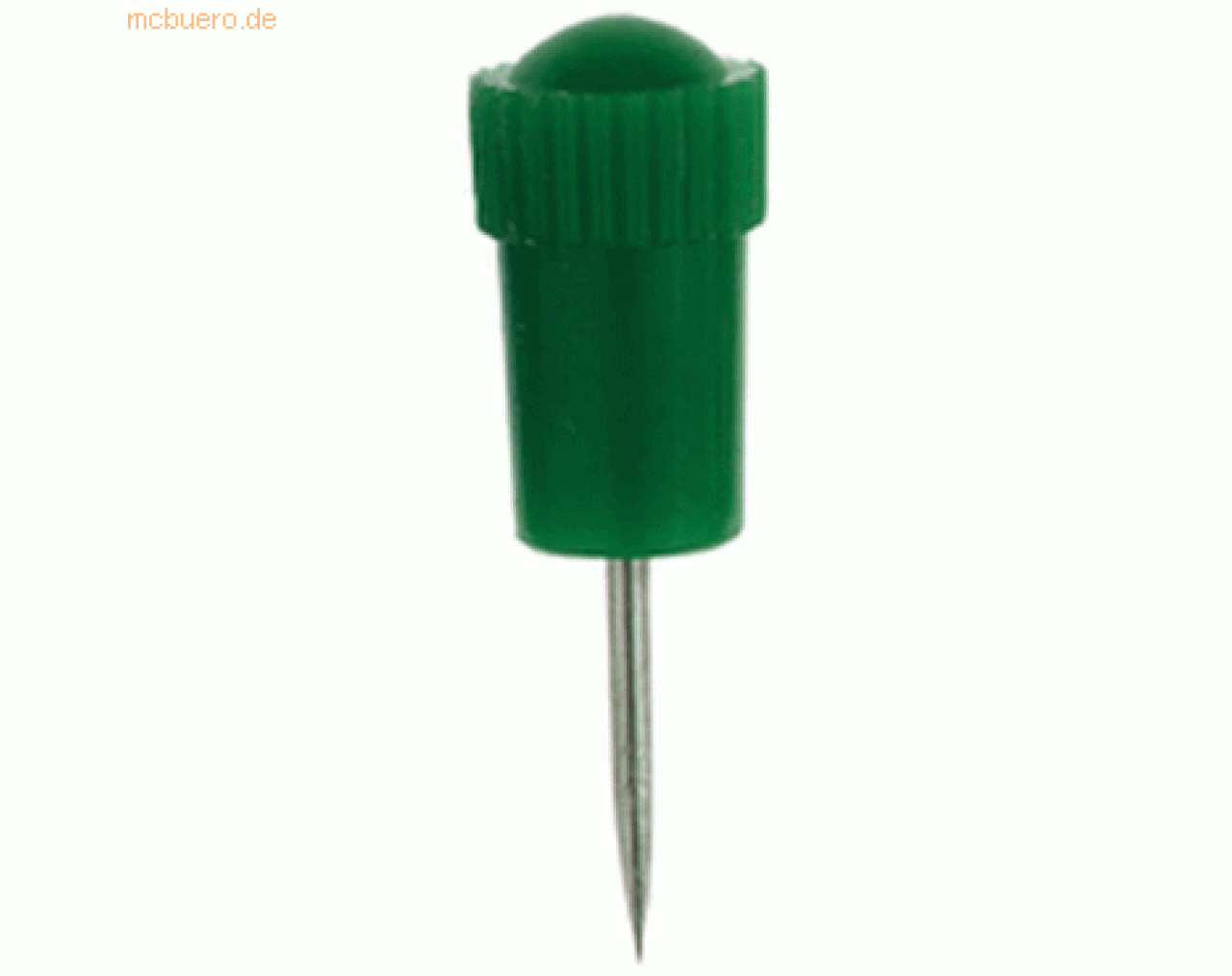 Mit geriffelter und gehärteter Stahlspitze und Plastikschaft; Nadellänge: 12 mm; Kopfgröße: 7,5 mm x 12 mm (B x H); Farbe: dunkelgrün; Verpackung: Plastikdose mit 50 Stück;