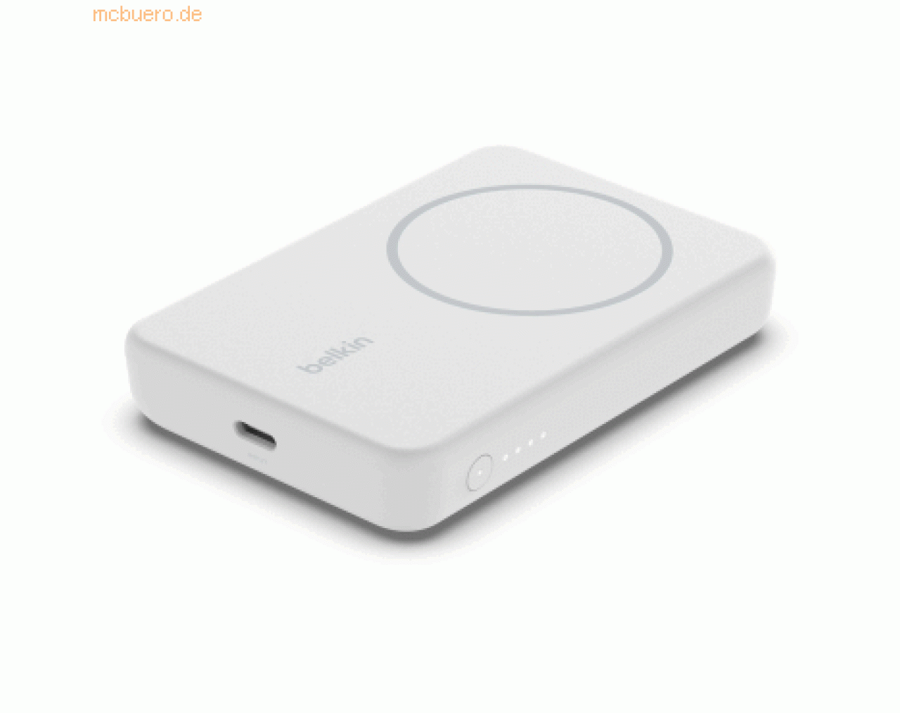 Nutzen Sie für Ihre Geräte ein leistungsstarkes kabelloses Ladegerät, das sich leicht transportieren lässt. Die tragbare, magnetische kabellose Powerbank 5K mit Ständer, die mit MagSafe-Technologie funktioniert, liefert 7,5 W. Sie können Ihr Gerät damit sicher laden, ohne ein Kabel oder eine Stromquelle zu benötigen. Dank eines praktischen ausklappbaren Ständers können Sie während des Ladens streamen und Videogespräche führen, ohne Ihr Gerät festhalten zu müssen. Die kompakte Powerbank hat eine Kapazität von 5.000 mAh. Wenn Sie Ihre Powerbank zum Nachladen an eine Steckdose angeschlossen haben, können Sie Ihr Gerät gleichzeitig per Passthrough laden und nutzen. Über den USB-C-Anschluss können Sie außerdem viele unterschiedliche kompatible Geräte mit bis zu 10 W Leistung versorgen.> Highlights- Nahtlose magnetische Befestigung für unterwegs oder an einem festen Platz- Dank eines praktischen ausklappbaren Ständers aus Metall können Sie Ihr Gerät während des Ladens verwenden, ohne es festhalten zu müssen- Überspannungsschutz sorgt für sicheres Laden mit hoher Leistung- Kapazität von 5.000 mAh- Die Gerätekamera wird durch die Befestigung nicht verdeckt?- Kompaktes, leichtes Modell, das überall zum Einsatz kommen kann?- Ermöglicht Laden per Passthrough, sodass Sie ein verbundenes Gerät auch während des Ladens der Powerbank nutzen können- USB-C-Anschluss liefert bis zu 10 W Leistung zum Laden einer großen Auswahl an kompatiblen Geräten?- An einer LED zur Anzeige des Ladezustands sehen Sie, wenn es Zeit zum Nachladen ist- Kompatibilität mit Apple iPhone Serie 12/13/14, AirPods/AirPods Pro und jeden Gerät mit USB-C Anschluss> Produkttyp- Powerbank- ear-Kategorie (ElektroG): relevant, Kategorie 5: Kleingeräte < 50 cm (alle Seiten), Kleingeräte B2C> Spezifikationen- Schutzfunktion: Überspannung> Versand- WEEE: 36706037- Akkugewicht: 152.5 g> Anschlüsse- USB-C: 1- Eingangsanschlüsse: USB-C- Ausgangsanschlüsse: USB-C> Stromversorgung- Akkukapazität: 5000 mAh- Akku-/Batterie-Technologie: Li-Ion - Lithium-Ionen- Ladestandanzeige- Ausgangsanschlüsse: USB-C- Akkuspannung: 3.6 V- Induktives Laden: 7,5 W- Leistungsabgabe: 10 W- Energie: 18 Wh> Kabel- Kabellänge: 1 m> Grundeigenschaften- Farbe: Weiß- Höhe: 95.5 mm- Länge/Tiefe: 15.5 mm- Breite: 65 mm> Lieferumfang- Belkin Magnetisch drahtlose Powerbank, Standfuß, 5.000 mAh- USB-C/USB-C-Kabel (1 m)- Hinweistext Lieferumfang: Das abgebildete Smartphone ist nicht im Lieferumfang enthalten.