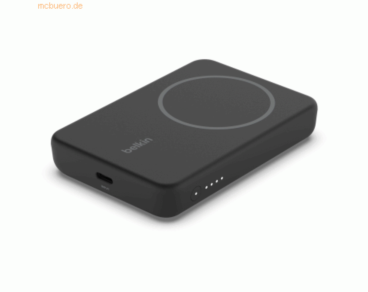 Nutzen Sie für Ihre Geräte ein leistungsstarkes kabelloses Ladegerät, das sich leicht transportieren lässt. Die tragbare, magnetische kabellose Powerbank 5K mit Ständer, die mit MagSafe-Technologie funktioniert, liefert 7,5 W. Sie können Ihr Gerät damit sicher laden, ohne ein Kabel oder eine Stromquelle zu benötigen. Dank eines praktischen ausklappbaren Ständers können Sie während des Ladens streamen und Videogespräche führen, ohne Ihr Gerät festhalten zu müssen. Die kompakte Powerbank hat eine Kapazität von 5.000 mAh. Wenn Sie Ihre Powerbank zum Nachladen an eine Steckdose angeschlossen haben, können Sie Ihr Gerät gleichzeitig per Passthrough laden und nutzen. Über den USB-C-Anschluss können Sie außerdem viele unterschiedliche kompatible Geräte mit bis zu 10 W Leistung versorgen.> Highlights- Nahtlose magnetische Befestigung für unterwegs oder an einem festen Platz- Dank eines praktischen ausklappbaren Ständers aus Metall können Sie Ihr Gerät während des Ladens verwenden, ohne es festhalten zu müssen- Überspannungsschutz sorgt für sicheres Laden mit hoher Leistung- Kapazität von 5.000 mAh- Die Gerätekamera wird durch die Befestigung nicht verdeckt?- Kompaktes, leichtes Modell, das überall zum Einsatz kommen kann?- Ermöglicht Laden per Passthrough, sodass Sie ein verbundenes Gerät auch während des Ladens der Powerbank nutzen können- USB-C-Anschluss liefert bis zu 10 W Leistung zum Laden einer großen Auswahl an kompatiblen Geräten?- An einer LED zur Anzeige des Ladezustands sehen Sie, wenn es Zeit zum Nachladen ist- Kompatibilität mit Apple iPhone Serie 12/13/14, AirPods/AirPods Pro und jeden Gerät mit USB-C Anschluss> Produkttyp- Powerbank- ear-Kategorie (ElektroG): relevant, Kategorie 5: Kleingeräte < 50 cm (alle Seiten), Kleingeräte B2C> Spezifikationen- Schutzfunktion: Überspannung> Versand- WEEE: 36706037- Akkugewicht: 152.5 g> Anschlüsse- USB-C: 1- Eingangsanschlüsse: USB-C- Ausgangsanschlüsse: USB-C> Stromversorgung- Akkukapazität: 5000 mAh- Akku-/Batterie-Technologie: Li-Ion - Lithium-Ionen- Ladestandanzeige- Ausgangsanschlüsse: USB-C- Akkuspannung: 3.6 V- Induktives Laden: 7,5 W- Leistungsabgabe: 10 W- Energie: 18 Wh> Kabel- Kabellänge: 1 m> Grundeigenschaften- Farbe: Schwarz- Höhe: 95.5 mm- Länge/Tiefe: 15.5 mm- Breite: 65 mm> Lieferumfang- Belkin Magnetisch drahtlose Powerbank, Standfuß, 5.000 mAh- USB-C/USB-C-Kabel (1 m)- Hinweistext Lieferumfang: Das abgebildete Smartphone ist nicht im Lieferumfang enthalten.