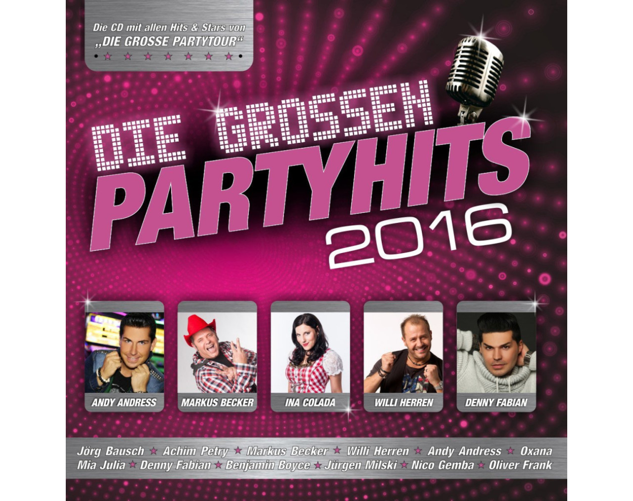Die Hits und Stars von "Die große Partytour" heizen ordentlich ein! Willi Herren, Markus Becker, Ina Colada, Jörg Bausch, Achim Petry, Jürgen Milski, Benjamin Boyce, Mia Julia und viele andere. Stimmung ist bei dieser Auswahl garantiert - auch für Ihre eigenen Feiern. Viel Spaß dabei!
