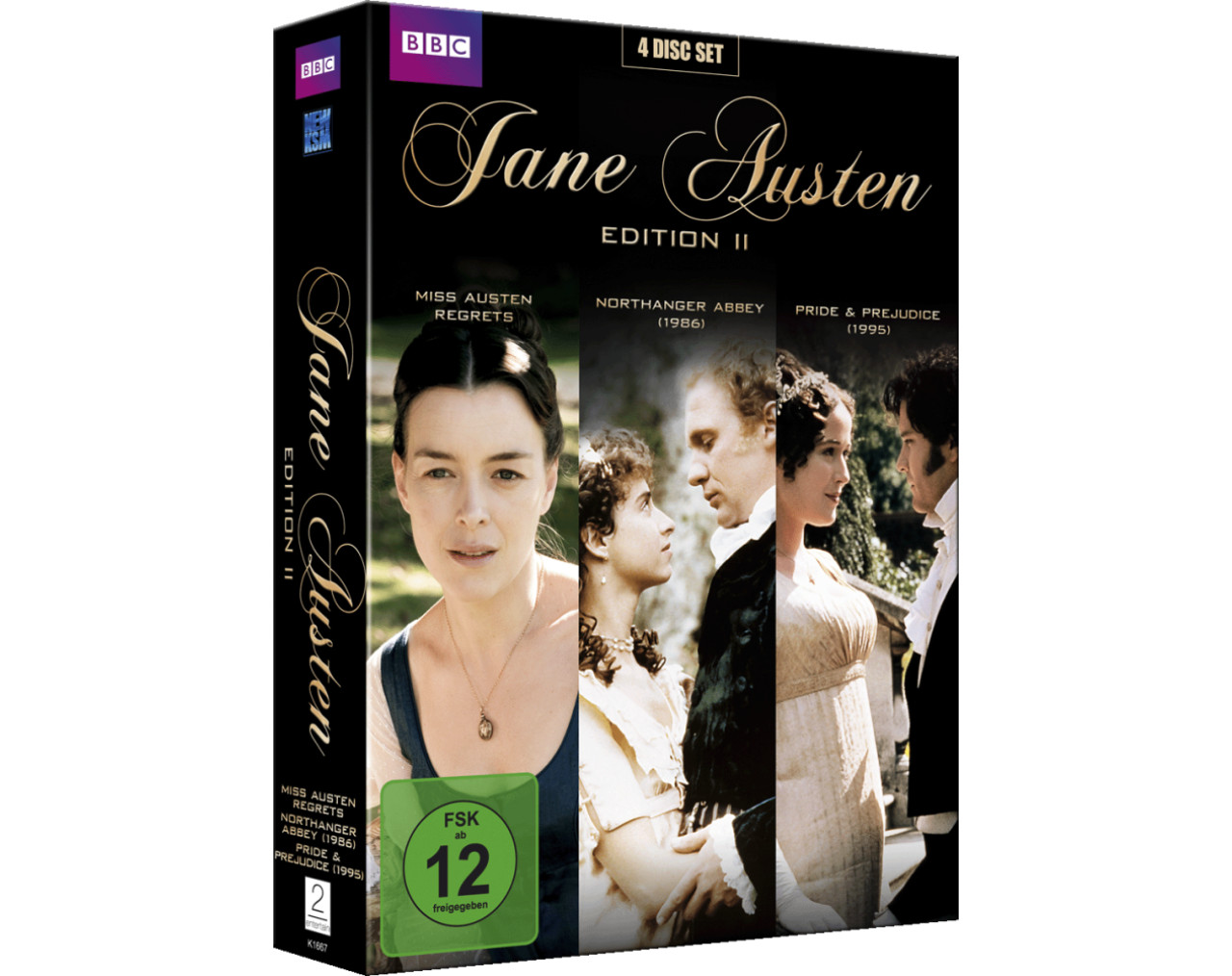 Miss Austen Regrets Die erfolgreiche Schriftstellerin Jane Austen ist mittlerweile fast 40 Jahre alt und lebt allein. Ihre Nichte Fanny bittet sie um ihren Rat, sie soll ihr bei der Suche nach einem Ehemann helfen, und da Jane ja durch ihre Bücher zu einer Fachfrau geworden ist, ist sie auch die geeignete Person dafür. Doch bei der Suche wird Jane bewusst, dass auch sie noch nicht den Richtigen gefunden hat... Northanger Abbey "Wer Catherine Morland als Kind gesehen hatte, wäre nie auf den Gedanken gekommen, dass sie zur Romanheldin bestimmt war." Catherine Morland lebt beschaulich und wohlbehütet auf dem Lande. Die einzige "Aufregung" in ihrem Leben besteht aus der Lektüre der damals so beliebten Schauer-Romane, mit schönen Jungfrauen in Not, geheimnisvollen Burgen, grausamen Unholden und strahlenden Helden, die ihre lebhafte Phantasie beschäftigen. Überraschend wird sie dann von einem älteren, kinderlosen Ehepaar eingeladen, sie auf eine Reise nach Bath zu begleiten. Dort angekommen hält man sie irrtümlicherweise für die Erbin dieses Ehepaars und das Interesse an ihr als "gute Partie" steigt. Zuerst lernt sie den netten und humorvollen Henry Tilney kennen, der sie stets liebevoll neckt. Doch auch John Thorpe, der Bruder ihrer neuen Freundin Isabella, bemüht sich um sie. Als sie von den Tilneys nach Northanger Abbey eingeladen wird, ist sie überzeugt, dass auch dieses romantische alte Kloster seine schrecklichen Geheimnisse bergen muss. Eifrig bemüht sie sich, hinter das Geheimnis dieses Ortes zu kommen. Doch plötzlich wird sie von General Tilney über Nacht aus dem Haus geworfen und ohne eine Erklärung nach Hause geschickt. Ob sie je einen ihrer Verehrer wieder sehen wird? Stolz und Vorurteil (Pride & Prejudice) Es ist eine allgemein anerkannte Wahrheit, dass ein Junggeselle, der im Besitz eines schönen Vermögens ist, unbedingt eine Frau braucht." Diese simple Wahrheit scheint sich zu bestätigen, als in Meryton zur Freude der dortigen Gesellschaft und aller unverheirateten Frauen zwei vermögende Junggesellen auftauchen. Besonders die Familie Bennet, die mit fünf Töchtern gesegnet ist, setzt große Hoffnungen darauf, dass eine ihrer Töchter das Herz eines der beiden Gentlemen erobern kann. Zunächst bestätigt Mr. Bingley diese Hoffnungen, doch Mr. Darcy scheint ein unnahbarer und arroganter Gentleman zu sein, der besonders Elizabeth, die zweitälteste Tochter, mit seiner Missachtung verfolgt. Bestärkt durch sein Verhalten und einige unerfreuliche Dinge, die sie über ihn erfährt, weist sie ihn ab. Doch ihre Wege kreuzen sich immer wieder und nicht alles ist so, wie es scheint...