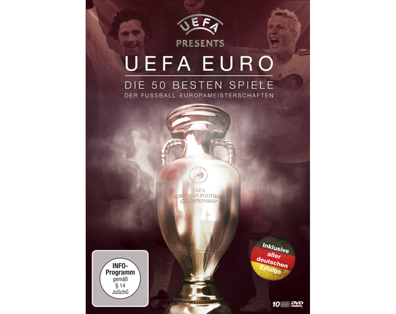 In ihrer mehr als 50-jährigen Geschichte hat die UEFA EURO (UEFA Fußball-Europameisterschaft) unzählige spektakuläre und unvergessene Spiele voller Dramatik, Emotionalität und großartigen Toren hervorgebracht, an die man sich immer wieder gerne erinnert. Die besten 50 Spiele dieser großartigen Europameisterschafts-Klassiker bringt diese exklusive DVD-Edition aus den Archiven der europäischen Fußballgeschichte noch einmal zurück, wie z.B.: BRD - UdSSR (Finale 1972) BRD - Belgien ( Finale 1980) BRD - Tschechien ( Finale 1996) Schweden - BRD (Halbfinale 1992) England - BRD (Halbfinale 1996) BRD - Türkei ( Halbfinale 2008) Niederlande - UdSSR (Finale 1988) Frankreich - Italien (Finale 2000) Griechenland - Portugal (Finale 2004) Spanien - Italien (Finale 2012) sowie viele mehr. 30 Minuten Highlights aus jedem Topspiel werden aufwendig in Szene gesetzt und lassen noch einmal die Leidenschaft, die Spannung, die Dramatik und den großartigen Fußball direkt aus dem Herzen eines der weltweit packendsten Wettbewerbe lebendig werden: Der UEFA EURO.