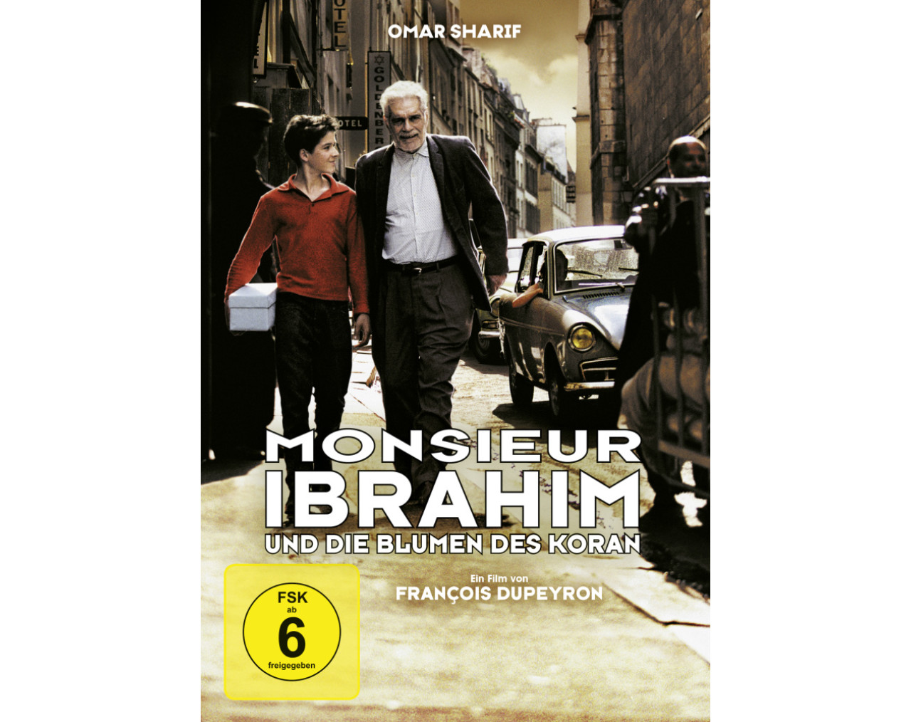 Monsieur Ibrahim betreibt ein kleines Geschäft, das die tägliche Anlaufstelle für den jungen Moses ist. Aus den wenigen Sätzen, die die beiden anfangs wechseln, werden bald tiefsinnige Gespräche über das Leben. Monsieur Ibrahim kennt das Geheimnis des Glücks und steht dem jungen Moses bei den ersten wesentlichen Lebenserfahrungen bei: zeigt, wie man(n) Brigitte Bardot eine Flasche Wasser überteuert verkauft und wie man einer Frau Komplimente macht. Er sensibilisiert für Freuden des Alltags, offenbart das Geheimnis des Lächelns und erklärt, warum man nur das behalten kann, was man verschenkt.