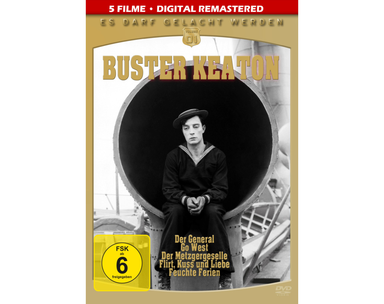 Der Cowboy Verarmt und ohne Arbeit ist Friendless gezwungen, das Leben eines Vagabunden zu führen. Am Güterbahnhof von New York findet er in einer verlorenen Damenhandtasche einen kleinen Damenrevolver und hat die Eingebung, mit dem nächsten Güterwaggon in den Westen aufzubrechen. Dort angekommen heuert er als Cowboy auf einer Rinderfarm an – ohne die geringste Ahnung zu haben, wie man Pferde sattelt oder die Milch aus Kühen bekommt. Dort beginnt in bester Wildwestmanier eine abenteuerliche Rettungsaktion für die junge Kuh Brown Eyes. Der General Während des amerikanischen Bürgerkriegs fühlt sich ein Lokomotivführer gleichermaßen zu seiner Braut und zu seiner Lokomotive "The General" hingezogen. Sein Dilemma löst sich erst, als beide von feindlichen Truppen entführt werden und er sie zurückerobern kann: Dazu bedarf es einer turbulenten Lokomotiv-Verfolgungsjagd mit zahlreichen, spektakulären Zwischenfällen. Kurzfilme Der Metzgergeselle, Flirt Kuss und Liebe, Feuchte Ferien, BUSTER KEATON (eigentlich JOSEPH FRANCIS KEATON) wurde am 04. Oktober 1895 geboren. KEATON zählt neben LAUREL & HARDY, CHARLIE CHAPLIN, HAROLD LLOYD oder BEN TURPIN zu den erfolgreichsten Komikern der Stummfilmzeit. Wegen seines bewusst ernsten, stoischen Gesichtsausdrucks wurde er THE GREAT STONEFACE und DER MANN, DER NIEMALS LACHTE genannt. 1) The Butcher-Boy (Der Metzgergeselle) Buster Keaton hatte in Der Metzgergeselle& (1917) sein Leinwand-Debüt. (S/w) Buster Keaton arbeitet in dieser Komödie in einer Metzgerei. In der gleichen Metzgerei arbeitet auch Fatty Arbuckle, doch eines Tages sind beide in die Tochter (Josephine Stephens) des Chefs verliebt... 2) A Reckless Romeo (Flirt, Kuss und Liebe!) Buster Keatons zweiter Film und zugleich fast sein Ende. Roscoe flirtet mit einem hübschen Mädchen im Park. Zu einem späteren Zeitpunkt folgt die böse Schwiegermutter. Der Stress ist vorprogrammiert... 3) The Rough House (Feuchte Ferien) Buster Keatons dritter Film und eine Doppelrolle. (S/w) Roscoe und seine Frau, sowie deren Mutter fahren an einen Badeort. Buster Keaton spielt dort einen lustigen Gärtner sowie ein Polizist. Das Abenteuer nimmt seinen Lauf...