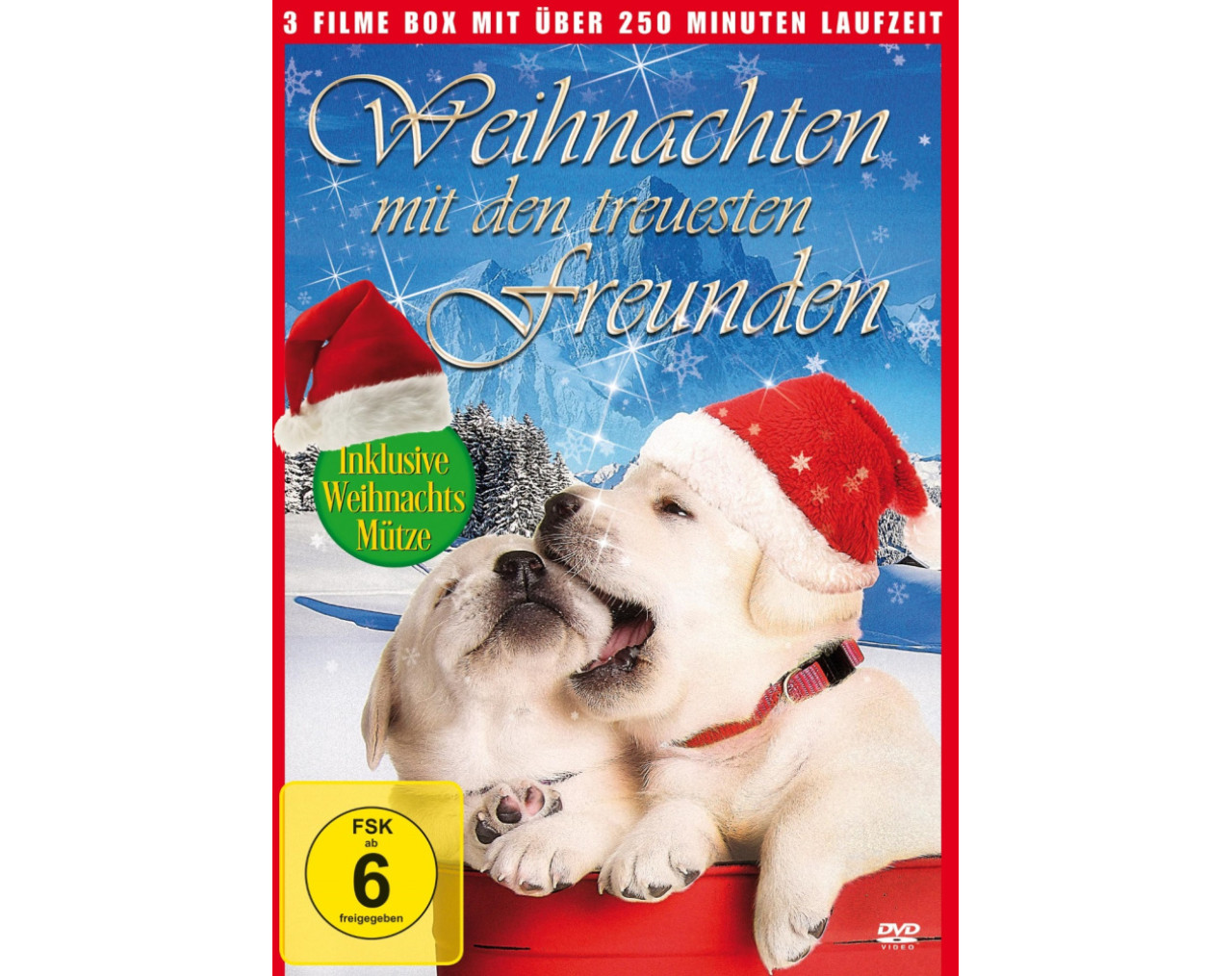 3 Filme-Box mit über 250 Minuten Laufzeit. Kleine Helden, Große Wildnis: Die Geschwister Hannah (Erin Pitt), Zach Wade (CJ Adams), und ihr treuer Husky Chinook sind mit dem Flugzeug unterwegs, um ihren Vater (Ted Whittall) an seinem weit abseits gelegenen Arbeitsplatz zu besuchen. Einer Arbeit, der er schon seit langem mehr Aufmerksamkeit widmet, als seiner Ehe mit Susan (Natasha Henstridge) und seinen Kindern. Die Kinder sind fest entschlossen, dies zu ändern. Doch es kommt anders: Ein Motorschaden an ihren kleinen Flugboot zwingt sie zu einer Bruchladung mitten in den Wäldern der kanadischen Wildnis, bei der sich der Pilot schwer verletzt und die den Funkkontakt zur Zivilisation unmöglich macht. Für die Kinder steht fest, es liegt an ihnen und ihrem Hund, sich und den Piloten zu retten. Sie machen sich auf in die Wildnis, in der Hoffnung Hilfe zu finden... Golden Winter: Oliver (Andrew Beckham), ein von seinen berufstätigen Eltern vernachlässigter Junge, freundet sich mit einem Rudel heimatloser Golden Retriever Welpen an, die auf der Suche nach Ihrer Mutter sind. Auf ihrer abenteuerlichen Reise können sie zusammen sogar einen Bankraub vereiteln. Nun liegt es an Oliver seine Eltern davon zu überzeugen, die Hunde zu adoptieren. Schließlich steht ja auch Weihnachten kurz vor der Tür… Drei mutige Hundefreunde: Die wunderbare Geschichte vier tierischer Freunde: Jericho, einem mutigen Straßenhund, der aus Menschenhand nie etwas Gutes erfahren hat; Ulysses, einer weisen tibetanischen Dogge; Petra, einer fürsorglichen Igel-Dame und Miguel, einem etwas streitlustigen und schelmischen Chamäleon. Diese vier und ein kleiner, gerissener Welpe namens Dim Sum, treffen auf den Straßen von Jerusalem auf den Zimmermann Jesus, der ihnen auf seine ganz besondere Art beibringt, ihren Peinigern zu vergeben und die Hoffnung zu bewahren.