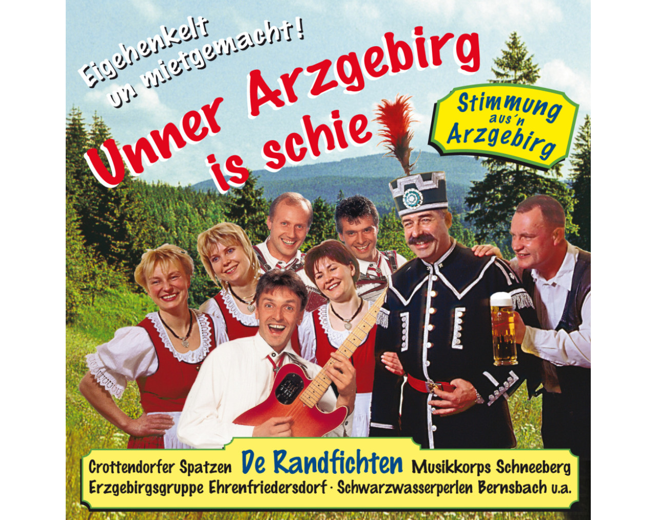 Beliebte „Arzgebirger“ Stimmungs-Schunkel-Ohrwürmer sowie Hits von DE RANDFICHTEN - stilecht eingespielt mit kerniger Blasmusik vom MUSIKKORPS der Bergstadt SCHNEEBERG. Mit dabei: Populäre Gruppen und Solisten der Region wie z.B. die ERZGEBIRGSGRUPPE EHRENFRIEDERSDORF, die CROTTENDORFER SPATZEN, die Bernsbacher SCHWARZWASSERPERLEN, FRANK MÄDER, HENDRIK SEIBT u.a. Vom „Schwammemarsch“ bis „Vugelbeerbaam“, von der „Hammerschenk“ bis zu „Do pfeift dr Fuchs“ erklingt alles, was Herz und Seele eines echten Arzgebirgers bewegt. Und natürlich geht diese Musik auch in Arme und Beine, denn unwillkürlich schunkelt jeder mit, wenn es heißt: Eigehenkelt un mietgemacht... Unner Arzgebirg is schie!