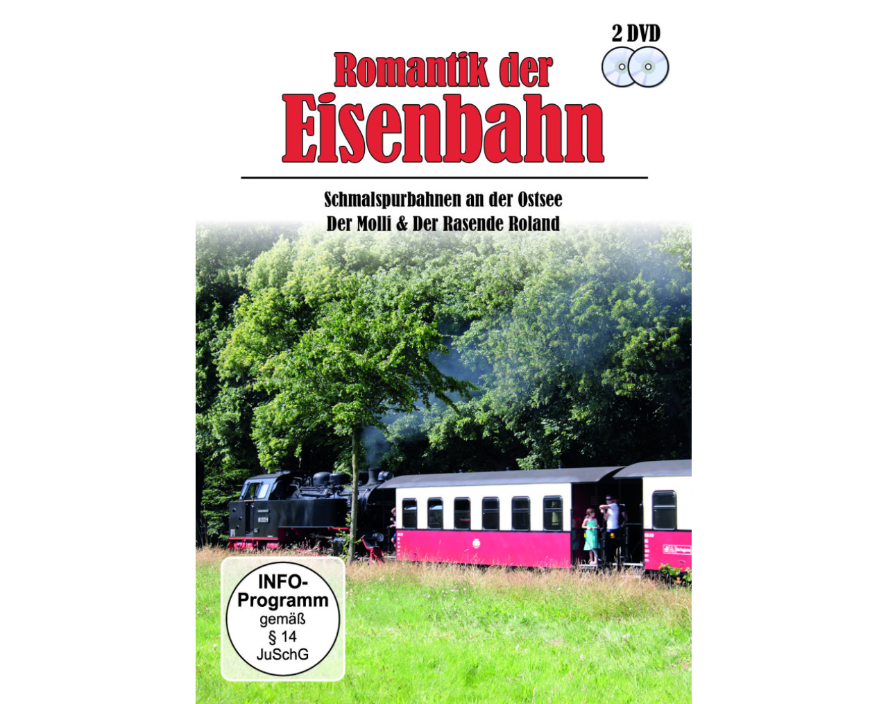 Bei bestem Sommerwetter entstand nach der Grenzöffnung die Dokumentation über die beliebten Bäderbahnen „Der Molli“ und „Der Rasende Roland“ bei vollem Fahrbetrieb. Der Molli Bad Doberan- Ostseebad Kühlungsborn Den „Molli“ erleben Sie auf allen Abschnitten der 15.4 km langen und einzigen öffentlichen 900-mm-Strecke der ehemaligen DDR: Auf dem Führerstand, auf der Strecke, bei der Lokabfertigung und bei seiner Fahrt durch die Straßen von Bad Doberan, wo der Dampfzug als „Straßenbahn“ durch den Ort fährt. Entlang einer prachtvollen Allee geht es zum Ostseebad Heiligendamm und weiter über Heiligendamm Steilküste nach Kühlungsborn West. Der Rasende Roland Putbus-Göhren / Rügen Den Rasenden Roland hören und sehen Sie auf der über 24 km langen 750 mm Strecke. Dazu erleben Sie die sommerlichen Reize der abwechslungsreichen Landschaft und der Strände der Insel Rügen. Dampfbetrieb auf allen Streckenabschnitten, Mitfahrt auf dem Führerstand der 99 1791-5 ab Göhren inclusive Lokabfertigung.