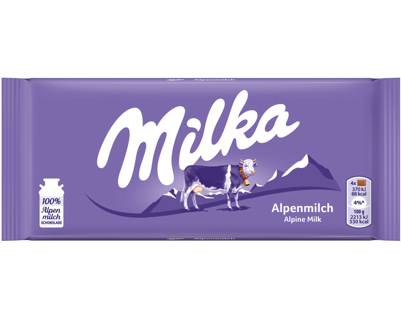Alpenmilch Schokolade. Kakao: 30% mindestens. Netto Füllmenge Bruttogewicht 102.00 Gramm,Nettogehalt 100.00 Gramm Allergene MAGERMILCHPULVER, MILCH, BUTTERREINFETT, SOJALECITHINE, HASELNUSSMASSE Kann Spuren enthalten von Glutenhaltiges Getreide sowie daraus hergestellte Erzeugnisse,Enthält - Ist im Produkt enthalten Sojabohnen und -erzeugnisse,Nüsse und Nusserzeugnisse. Kann Mandeln, Haselnüsse, Walnüsse, Cashewnüsse etc. einschliessen,Milch und Milcherzeugnisse Aufbewahrung Trocken lagern und vor Wärme schützen. Zutaten Zutaten: Zucker, Kakaobutter, MAGERMILCHPULVER, Kakaomasse, Süssmolkenpulver (aus MILCH), BUTTERREINFETT, Emulgator (SOJALECITHINE), HASELNUSSMASSE, Aroma. KANN ANDERE NÜSSE UND WEIZEN ENTHALTEN. Nährwerte pro 100g Unzubereitet 1 Portion, Energie 371,00 kJ, Energie 89,00 kcal, Fett 7,60 g, davon gesättigte Fettsäuren 2,90 g, Kohlenhydrate 9,90 g, davon Zucker 9,80 g, Ballaststoffe 0,30 g, Eiweiß 1,00 g, Salz 0,05 g , Unzubereitet 100 Gramm, Energie 2.221,00 kJ, Energie 532,00 kcal, Fett 29,00 g, davon gesättigte Fettsäuren 17,00 g, Kohlenhydrate 59,00 g, davon Zucker 59,00 g, Ballaststoffe 1,80 g, Eiweiß 6,10 g, Salz 0,27 g Gütezeichen Kakao: 30% mindestens. Ursprungsland DEUTSCHLAND, BUNDESREPUBLIK Marke MILKA Hersteller Name: Mondelez Österreich GmbH,Adresse: Schönbrunner Strasse 297-307 A-1120 Wien