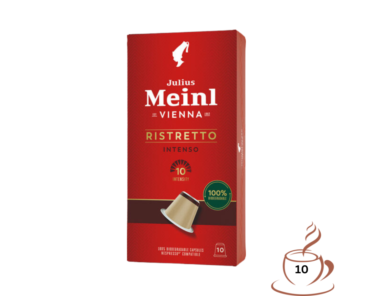 Julius Meinl Inspresso Ristretto Intenso 10, Nespresso-kompatibel, kompostierbar, 10 Kaffeekapseln, 56 Gramm