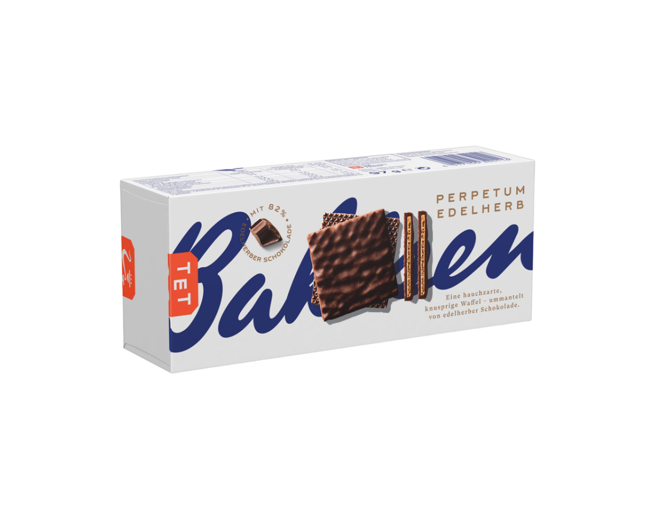 Bahlsen Perpetum Edelherb, 97g Waffel mit edelherber Schokolade (82 %) Netto Füllmenge Bruttogewicht 0.134 Kilogramm,Nettogehalt 0.097 Kilogramm Allergene Enthält - Ist im Produkt enthalten Eier und -erzeugnisse,Glutenhaltiges Getreide sowie daraus hergestellte Erzeugnisse,Milch und Milcherzeugnisse Aufbewahrung Trocken lagern, vor Wärme schützen. Zutaten Zutaten:Kakaomasse, Zucker, WEIZENMEHL, Kakaobutter, Molkenerzeugnis (MILCH), Palmöl, Emulgator: Lecithine, VOLLMILCHPULVER, Invertzuckersirup, HÜHNEREIGELBPULVER, Salz, Backtriebmittel: Natriumcarbonate, Aromen. Nährwerte pro 100g Unzubereitet 100 Gramm, Energie 2.209,00 kJ, Energie 530,00 kcal, Fett 31,00 g, davon gesättigte Fettsäuren 19,00 g, Kohlenhydrate 52,00 g, davon Zucker 35,00 g, Ballaststoffe 6,70 g, Eiweiß 7,30 g, Salz 0,08 g Ursprungsland DEUTSCHLAND, BUNDESREPUBLIK Hersteller Name: BAHLSEN,Adresse: 30001 HANNOVER