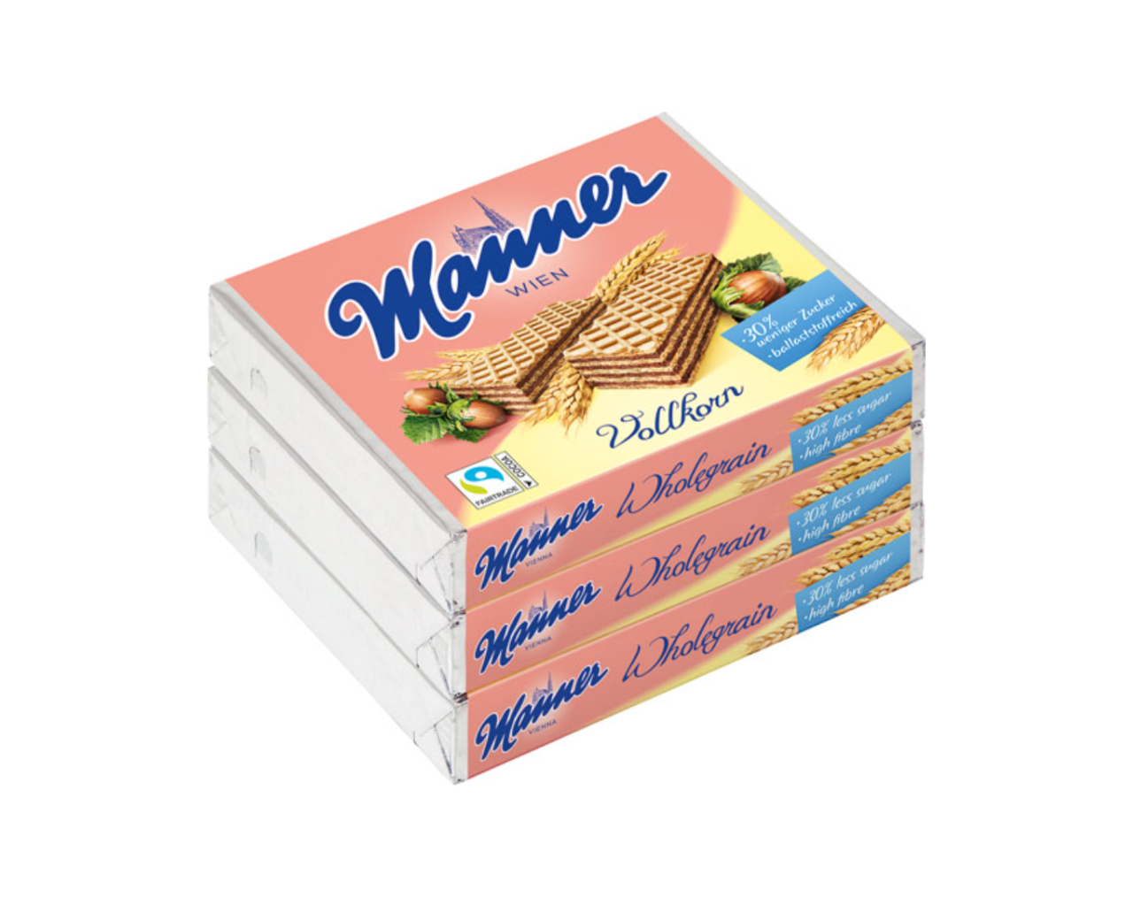 Manner Schnitten Vollkorn, 3er Packung, 225 Gramm Packung Knusprige Vollkornwaffeln mit Haselnusscremefüllung (82%), mit 30% weniger Zucker Netto Füllmenge Bruttogewicht 0.225 Kilogramm,Nettogehalt 225.00 Gramm Allergene Kann Spuren enthalten von Milch und Milcherzeugnisse,Enthält - Ist im Produkt enthalten Sojabohnen und -erzeugnisse,Glutenhaltiges Getreide sowie daraus hergestellte Erzeugnisse,Nüsse und Nusserzeugnisse. Kann Mandeln, Haselnüsse, Walnüsse, Cashewnüsse etc. einschliessen Aufbewahrung Bei Zimmertemperatur und trocken lagern. Zutaten Zutaten: WEIZENVOLLKORNMEHL, Zucker, pflanzliche Fette (Kokos, Palm), Oligofruktose, HASELNÜSSE (12% in der Creme), Glukosesirup, mageres Kakaopulver, natürliche Aromen, Emulgator: Lecithine (SOJA), Backtriebmittel: Natriumhydrogencarbonat, Salz. Kann Spuren von anderen Nüssen und Milchbestandteilen enthalten. Nährwerte pro 100g Unzubereitet 1 Portion, Energie 299,00 kJ, Energie 72,00 kcal, Fett 3,90 g, davon gesättigte Fettsäuren 2,50 g, Kohlenhydrate 7,20 g, davon Zucker 3,90 g, Ballaststoffe 2,50 g, Eiweiß 0,70 g, Salz 0,01 g , Unzubereitet 100 Gramm, Energie 1.999,00 kJ, Energie 480,00 kcal, Fett 26,00 g, davon gesättigte Fettsäuren 17,00 g, Kohlenhydrate 48,00 g, davon Zucker 26,00 g, Ballaststoffe 17,00 g, Eiweiß 5,00 g, Salz 0,08 g Marke MANNER Hersteller Name: Josef Manner & Comp. AG,Adresse: Wilhelminenstraße 6, 1170 Wien, Austria,Webseite: www.manner.com