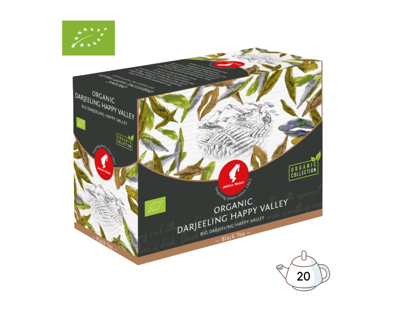 Julius Meinl Bio Darjeeling Happy Valley Big Bag (Kannen Teebeutel), Schwarztee, 20 Teebeutel im Kuvert