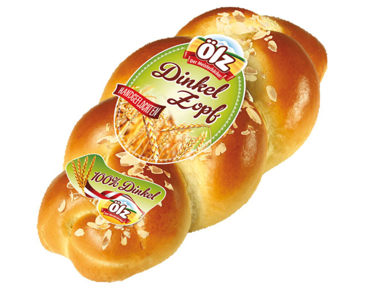 Ölz Dinkelzopf, 500 Gramm FEINES HEFETEIGGEBÄCK AUS DINKELMEHL. Netto Füllmenge Nettogehalt 500.00 Gramm,Bruttogewicht 0.505 Kilogramm Allergene Kann Spuren enthalten von Milch und Milcherzeugnisse,Enthält - Ist im Produkt enthalten Eier und -erzeugnisse,Glutenhaltiges Getreide sowie daraus hergestellte Erzeugnisse,Nüsse und Nusserzeugnisse. Kann Mandeln, Haselnüsse, Walnüsse, Cashewnüsse etc. einschliessen Aufbewahrung Ungeöffnet mindestens haltbar bis: siehe Datumseindruck Packungsvorderseite Zutaten DINKELMEHL 61%, Wasser, Zucker, Rapsöl, Glukosesirup, Hefe, VOLLEI, DINKELKLEIE 1%, MANDELN gehobelt, Speisesalz, Emulgatoren (Mono- und Diglyceride von Speisefettsäuren, Mono- und Diacetylweinsäureester von Mono- und Diglyceriden von Speisefettsäuren), Säureregulator: Natriumacetat, Säuerungsmittel: Essigsäure, Aroma.Mehl aus der EU. Kann Spuren von MILCHERZEUGNISSEN enthalten. Nährwerte pro 100g Unzubereitet 100 Gramm, Energie 1.382,00 kJ, Energie 328,00 kcal, Fett 7,10 g, davon gesättigte Fettsäuren 0,70 g, Kohlenhydrate 56,00 g, davon Zucker 12,00 g, Ballaststoffe 2,20 g, Eiweiß 8,80 g, Salz 0,80 g Ursprungsland ÖSTERREICH Hersteller Name: Rudolf Ölz Meisterbäcker GmbH & Co KG,Adresse: Achstraße 9, A-6850 Dornbirn, Austria,Webseite: www.oelz.com