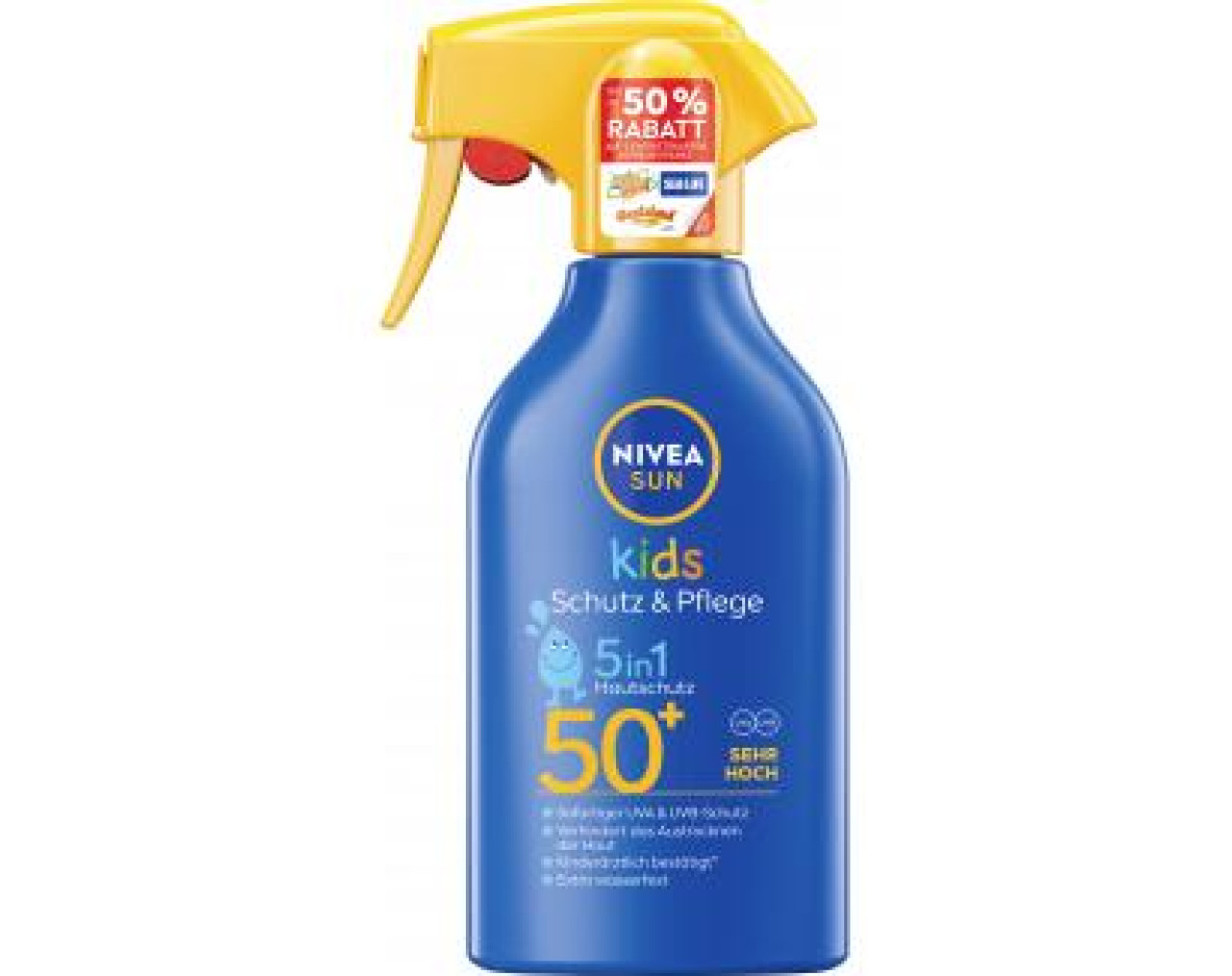 Die Nivea Sun Kids Schutz & Pflege Sonnencreme mit LSF 50+ bietet speziell für empfindliche Kinderhaut hochwirksamen, sofortigen Schutz vor Sonnenbrand und langfristigen Hautschäden. Die pflegende Textur der Sonnenmilch für Kinder unterstützt die natürliche Schutzbarriere der Haut und spendet langanhaltende Feuchtigkeit. Zusätzlich ist die Formel dieses hochwirksamen Sonnenschutzes für Kinder frei von den umweltschädlichen UV-Filtern Octocrylen, Octinoxat und Oxybenzon. Die besondere Formel hilft zusätzlich die Intensität von Sonnencreme-Flecken nach dem Waschen zu reduzieren. Entdecken Sie das extra wasserfeste Triggerspray mit LSF 50+ von Nivea Sun Kids: dermatologisch getestet & zuverlässig!