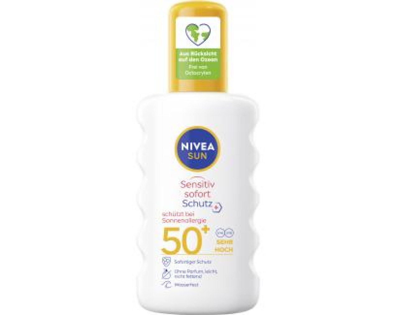 Das Nivea sensitive Sonnenspray mit LSF 50+ schützt sofort und zuverlässig empfindliche Haut vor sonnenbedingten Hautirritationen. Sie bietet besonders hohen Schutz gegen UVA- & UVB-Strahlung und reduziert so das Risiko von sonnenbedingten Hautirritationen und Allergien. Die leichte, nicht fettende Formel, angereichert mit natürlicher Aloe Vera und Süßholzextrakt, ist frei von Duft-, Farb- und Konservierungsstoffen. Zusätzlich ist die Formel dieses hochwirksamen Sonnenschutzes für besonders empfindliche Haut frei von den umweltschädlichen UV-Filtern Octocrylen, Octinoxat und Oxybenzon sowie frei von Mikroplastik. Die Produktverpackung besteht aus einer zu 95% recycelten Flasche (ohne Verschluss, Pumpe). Die perfekte Sonnencreme für Allergiker: Nivea Sun Sensitiv sofort Schutz Sonnenspray mit Anti-Sonnenallergie Wirkung.