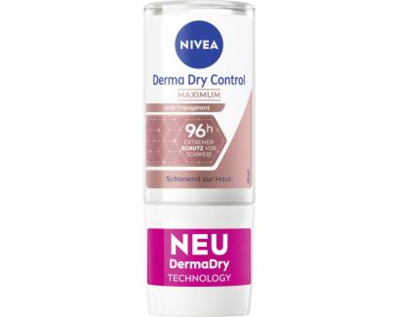 Entdecke Nivas's stärksten Anti-Transpirant Roll-On: Nivea DermaDry Control Maximum Deo Roll-On. Die Derma Dry Technologie bietet nicht nur 96H Schutz gegen starkes Schwitzen, Nässe und Geruch, sondern ist auch schonend zur Haut und sorgt für ein weiches und geschmeidiges Hautgefühl, ganz ohne Irritationen.