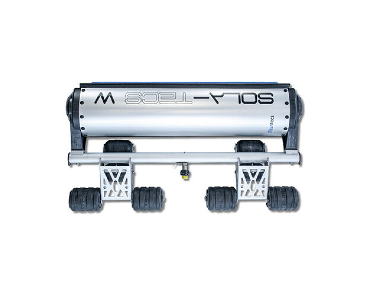 Professionelle PV-Reinigung mit SOLA-TECS W Das mobile, mit Wasser angetriebene Profi-Reinigungsgerät für Photovoltaikanlagen verfügt über ein robustes Getriebegehäuse und hochwertige High End Kugellager. Der Deckel des Getriebegehäuses ist an der Außenseite angebracht, um Reparaturen und Wartungsarbeiten einfach durch Öffnen des seitlichen Getriebedeckels vor Ort zu erledigen. Der Spritzschutz sorgt dafür, dass man beim Reinigen trocken bleibt und das Wasser gezielt zum Abschwemmen der gelösten Verschmutzungen bereitsteht. Die Soft-Sicherheitswalzen und das spezielle Haltetrapez ermöglichen eine leichtere Führung des Geräts. Die Sola-Tecs W Pro beinhaltet eine Umschaltfunktion, um die Drehrichtung der Bürste umzukehren. Sie erhalten die SOLA-TECS W in folgenden Ausführungen: SOLA-TECS W800 inkl. Führungswalzen, Pendellanze, Seilverspannung und Transportkiste SOLA-TECS W800 PRO (mit Umschaltung) inkl. Führungswalzen, Pendellanze, Seilverspannung und Transportkiste SOLA-TECS W1000 inkl. Führungswalzen, Pendellanze, Seilverspannung und Transportkiste SOLA-TECS W1000 PRO (mit Umschaltung) inkl. Führungswalzen, Pendellanze, Seilverspannung und Transportkiste Technische Daten SOLA-TECS W800 SOLA-TECS W800 PRO SOLA-TECS W1000 SOLA-TECS W1000 PRO Flächenleistung 300 m² / h 300 m² / h 350 m² / h 350 m² / h Arbeitsdruchk: 100 – 120 bar 100 – 120 bar 100 – 120 bar 100 – 120 bar Gewicht: 22 kg 22 kg 29 kg 29 kg Temperatur max.: 40 °C 40 °C 40 °C 40 °C Wasserverbrauch: 10 l / min 10 l / min 10 l / min 10 l / min Durchmesser: 240 mm 240 mm 240 mm 240 mm Reinigungsbreite: 800 mm 800 mm 1.000 mm 1.000 mm