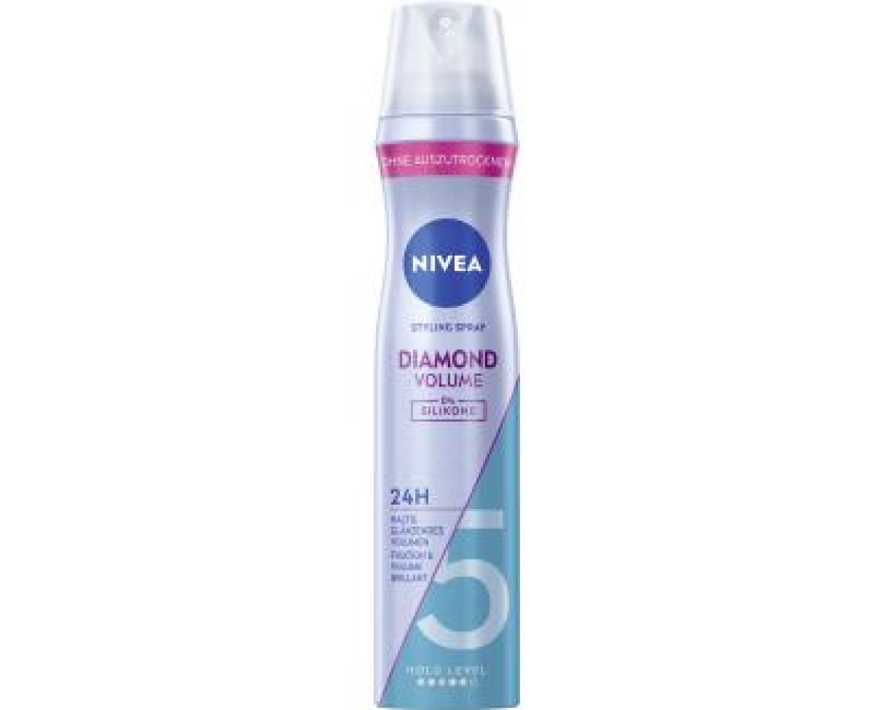 Das Nivea Diamond Volume Care Styling Spray bietet ultrastarken Halt für bis zu 24 Stunden mit doppeltem Volumen und Diamantglanz. Die vegane*, silikonfreie Formel mit, Panthenol & Vitamin B3 stärkt und schützt das Haar vor äußeren Schäden und Stressfaktoren. Es ist aktiv pflegend, trocknet nicht aus und lässt sich leicht auskämmen. Für kräftiges, schön gestyltes Haar: Nivea Diamond Volume Care Styling Spray. *keine tierischen oder aus Tieren gewonnenen Inhaltsstoffe.