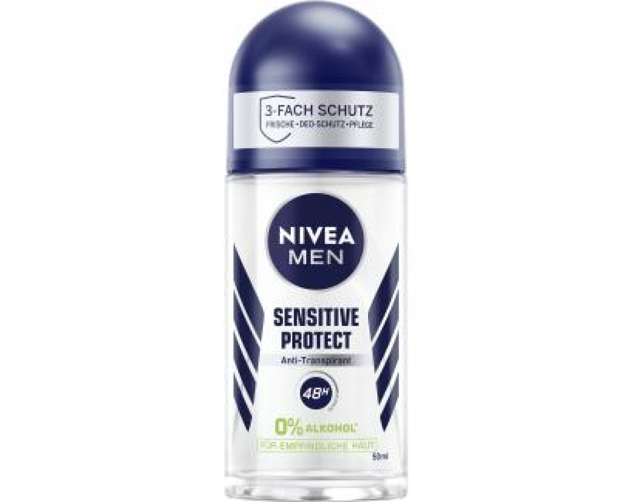 Nivea Men Sensitive Protect Deo Roll-On schützt empfindliche Haut 48 Stunden lang vor Achselnässe und Körpergeruch – Ohne Alkohol. Reizungen, Hautrötungen oder Brennen wird mit Hilfe des wertvollen Kamillenextrakts wirksam vorgebeugt. Der angenehme Duft kombiniert mit der bewährten sanften Nivea Pflege. Für empfindliche Haut entwickelt.