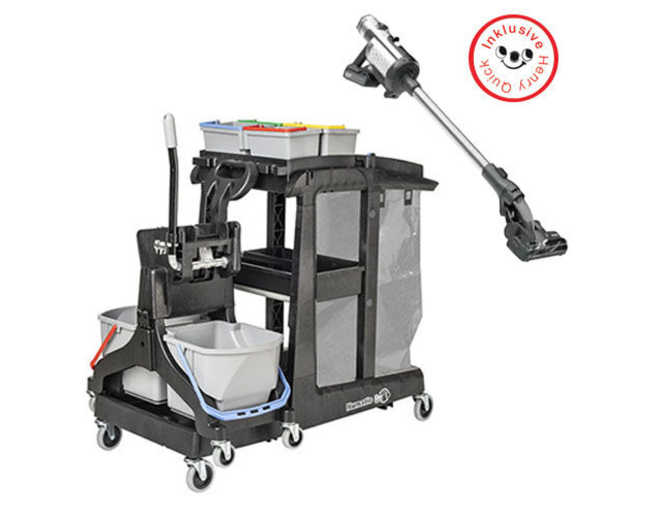 Aktion Nachhaltigkeit - Nuamtic Reinigungswagen EcoMatic 3B inkl. MidMop Black, 8 Stück + Henry Quick Akku Staubsauger Gratis