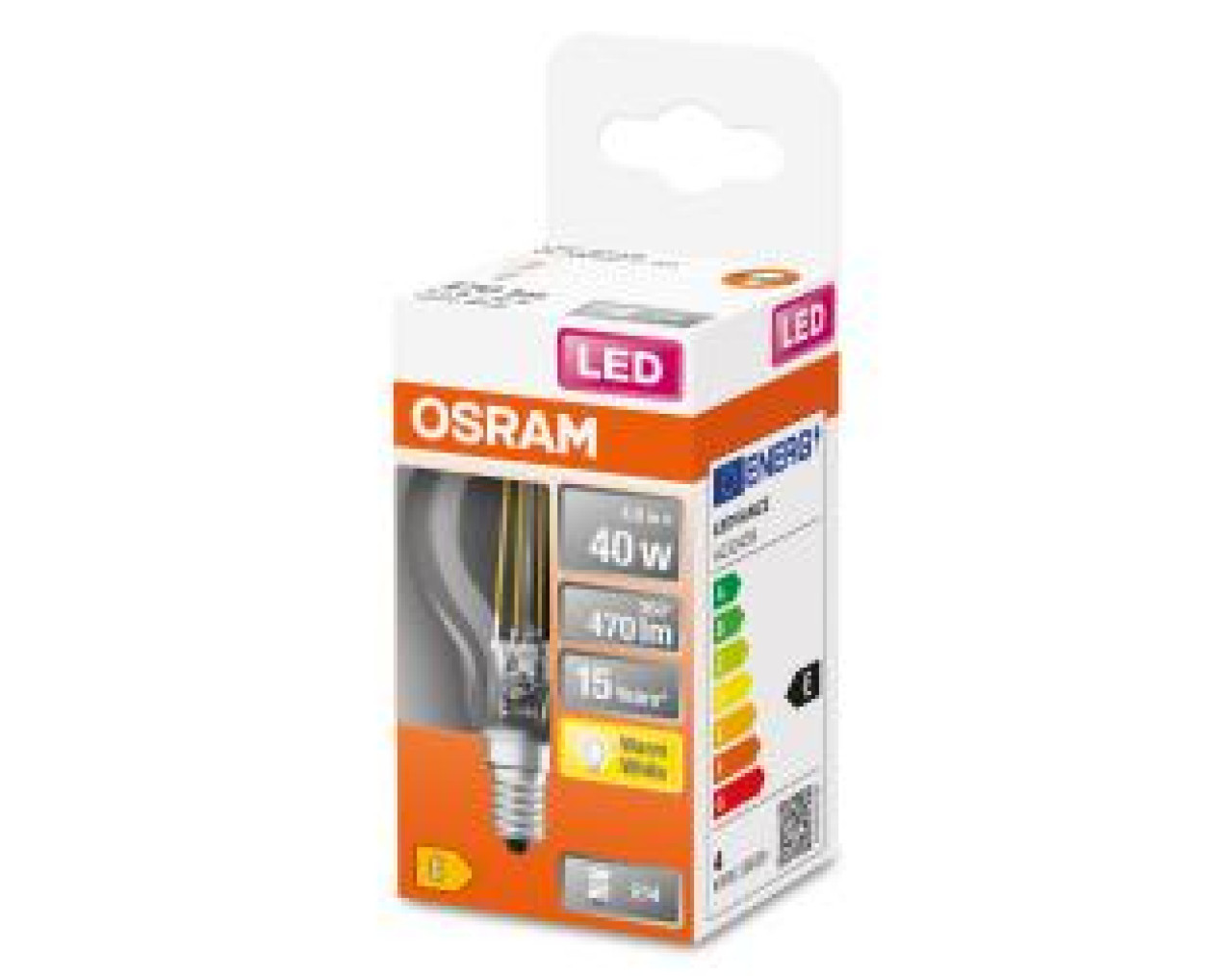 LED Star Classic P40 Retrofit 4W E14 klar warmweiß von Osram. https://www.awin1.com/pclick.php?p=35750056256&a=1539299&m=14902