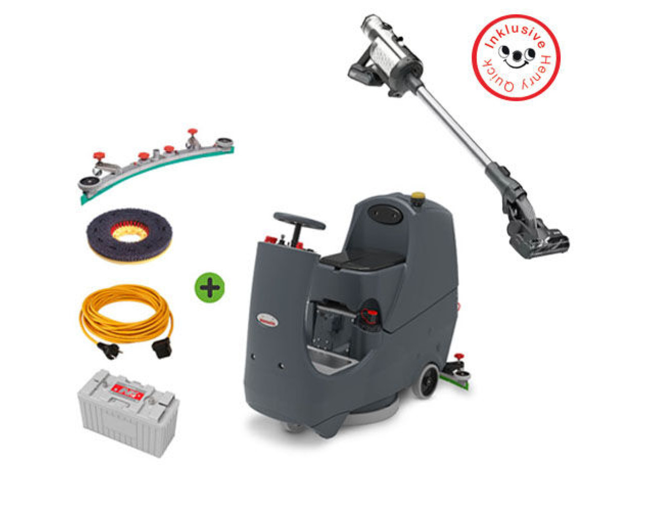 Numatic Aufsitz-Scheuersaugmaschine CRL8055/50 inkl. integriertes Ladegerät, 1 x NX1K Batterie Der CRL8055 liefert mühelos eine kraftvolle Reinigungsleistung in größeren Umgebungen, während er sich problemlos durch überfüllte Bereiche bewegt, indem er die klassenbeste Schrubbbreite mit einem kompakten Aufsitzdesign kombiniert. Schnelles und flexibles Aufladen ohne Beeinträchtigung der Batterieleistung, angetrieben von der neuesten Lithium-Phosphat-Technologie NX1K (Akku muss separat bestellt werden). Ein riesiges Fassungsvermögen von 80 Liter, eine Bürstendrehzahl von 150 U/min und eine Schrubbbreite von 550 mm, benutzerfreundliche Bedienelemente und ein integriertes Ladesystem sorgen für leistungsstarke Reinigungsergebnisse. Komplettes Reinigungsgerät: Vollständig einstellbare Geschwindigkeitskontrolle und einfacher Zugang zu Batterien und Sicherungen. Saubere, trockene und sichere Böden: in wenigen Minuten Hochwertige, schnelle und gleichmäßige Reinigungsergebnisse, wo immer sie benötigt werden. Länger Reinigen: Mit einem Fassungsvermögen von 80 l und einer Laufzeit von bis zu 3 Stunden sorgt der CRL8055 für eine längere Reinigungsdauer. Schnelles & flexibles Laden: Die NX1K-Technologie ermöglicht schnelles und flexibles Aufladen. Nu-Assist: Mit der Nu-Assist App haben Sie und Ihr Team rund um die Uhr und von jedem Gerät aus Zugriff auf mehrsprachige Schulungen, Fehlerbehebungs- und Wartungsinhalte und steigern so die Reinigungsproduktivität auf ganzer Linie. Vorteile 4 x längere Lebensdauer als Bleibatterien* Fortschrittliche und sichere Lithium-Phosphat-Technologie Flexibles Aufladen benutzerfreundliches Bedienelement 4000 Ladezyklen 8 Jahre Garantie** Flächenleistung: bis zu 2.200 m²/h*** Inklusivzubehör SC-Scheuerbürste rot, 550 mm Saugfuss 650 höhenverstellbar komplett (805 mm), semiparabolisch Ladekabel 3 x 1,0 mm², gelb NX1K LiFePO4-Akku, 1280 Wh Technischen Daten Frischwasser: 80 Liter Schmutzwasser: 80 Liter Laufzeit: 155 Min. Nennspannung: 24 V 100 Ah Bürstmotor: 300 W Motor: 400 W Bürstendurchmesser: 550 mm Paddurchmesser: 508 mm Umdrehungen: 150 U/Min. Arbeitsbreite: 805 mm Gewicht: 140 kg Abmessungen (L x B x H): 805 x 1460 x 1160 mm Laufzeit:1 Std. 30 Min.Ladezeit:2 Std. 30 Min. VE: 1 *Alle verwendeten Vergleiche basieren auf typischen Nutzungsszenarien, die Ergebnisse können abweichen. Die Leistungsvergleiche beziehen sich auf gleichwertige GelTec-Modelle. **Standard-Garantie 5 Jahre. 8 Jahre Garantie vorbehaltlich der Bedingungen und Marktvereinbarungen, bitte kontaktieren Sie Numatic für weitere Informationen. ***Die Flächenleistung wird mit einer Geschwindigkeit von 3 km/h bei Nachläufern und 4 km/h bei Aufsitzern berechnet.