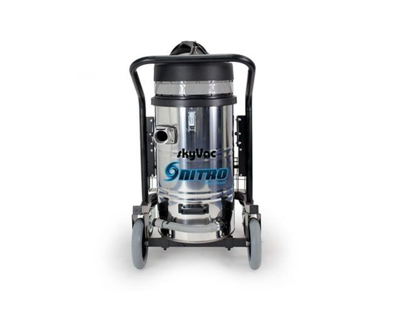 skyVac Nitro Dachrinnensauger - benutzerfreundlich & leistungsstark Der skyVac Nitro Dachrinnensauger ist das leistungsstärkste Modell der External Familie. Mit einer beeindruckenden Luftfördermenge von 13.900 Litern pro Minute und einem Wasserhub von 112 Zoll (2,8 Metern) garantiert er intensive und schnelle Reinigungsergebnisse. Merkmale für den skyVac Nitro: Robuste Konstruktion: Die Stahltrommel des skyVac Nitro fasst 78 Liter Schmutz und ist auf einem stabilen Stahlwagen montiert. Dieser Wagen ist mit übergroßen, geländegängigen Rädern ausgestattet, die für maximale Stabilität auf unebenem Terrain sorgen. Die feststellbaren und multidirektionalen Vorderräder ermöglichen ein einfaches Manövrieren und eine sichere Platzierung des Saugers. Zusätzlich verfügt der Wagen über einen praktischen Korb an der Rückseite zur Aufbewahrung von Werkzeug und Zubehör. Leistungsstarke Saugleistung: Der skyVac Nitro zeichnet sich durch eine Kombination aus einem Wasserhub von 2,8 Metern und einem Luftstrom von 13.900 Litern pro Minute aus. Diese Leistungsdaten sind in der External Familie bisher unübertroffen. Benutzerfreundliche Abfallentsorgung: Der skyVac Nitro ist mit einem Abflussschlauch und einem Siebkorb ausgestattet, die eine benutzerfreundliche Abfallentsorgung ermöglichen. Im Siebkorb werden feste Bestandteile des Saugguts gesammelt, während sich die Flüssigkeiten am Boden absetzen und über den Schlauch einfach in die Kanalisation abgeleitet werden können. Feste und organische Abfälle lassen sich bequem aus der praktischen Kipp-Trommel in der Bio-Tonne oder dem Kompost entsorgen. Effiziente Filterung: Der Filter des Nitro wird, wie bei allen skyVac Dachrinnensaugern, hinter einer Schutzplatte positioniert. Der 50-mm-Zyklon-Seiteneinlass minimiert Verstopfungen, indem er Schmutz durch Verwirbelung in feste und flüssige Bestandteile trennt und innerhalb der Trommel vom Einlass weg leitet. Lieferumfang: 1 x skyVac Nitro Dachrinnensauger Hinweis: Der Lieferumfang beinhaltet NUR die Maschine! Technische Daten Wattleistung:3600 W (3 x 1200 W Motoren)Wasserhub:112"Luftstrom-Bewegung:13.900 LPMZyklon-Seiteneingang:50 mmTankinhalt:78 LiterDezibel-Pegel:77 dBFassungsvermögen:78 LiterLänge des Netzkabels:12 mGewicht:41 kgAbmessungen (L x B x H):80 x 60 x 100 cmVE:1 skyVac Nitro in der Anwendung