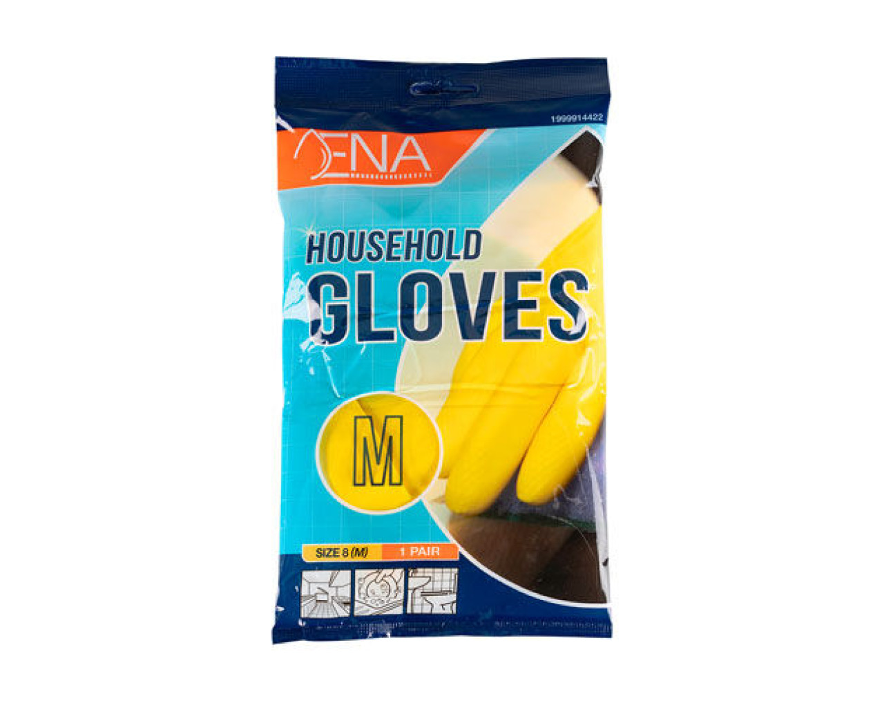 ENA Household Latexhandschuhe, gelb, 12 Paar pro Pack Innenseite mit Baumwolle beflockt für die Aufnahme von Schweiß. Anatomisch geformt; wirkt damit der Erschöpfung und Belastung der Hände entgegen. Die Struktur der Oberfläche garantiert einen guten, sicheren Griff in nasser Umgebung. Empfohlen für die Handhabung von Lebensmittel. Mit Rollrand Normen und Zertifikate CAT I Lebensmittelecht (Glas + Gabel) ENA Household Latexhandschuhe, gelb sind in folgenden Größen erhältlich: S M L XL Produkteigenschaften Größen: S; M; L; XL Farbe: gelb Material: Latex Länge: 300 mm VE Pack: 12 Paar VE Karton: 144 Paar