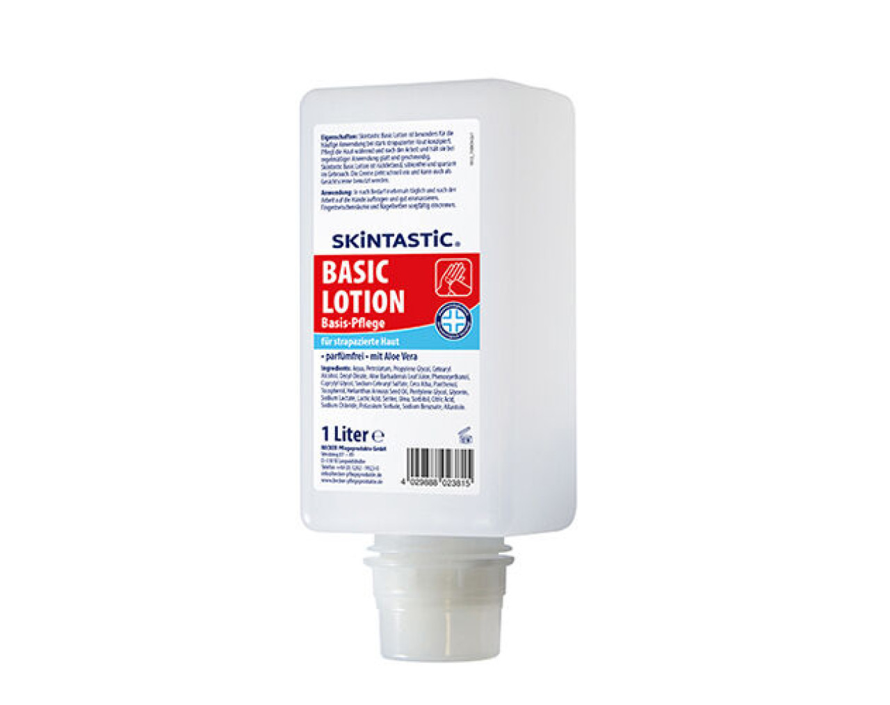 Skintastic Basis-Pflegelotion 1 Liter Softflasche für strapazierte Haut Zur Anwendung während und nach der Arbeit. Die Lotion ist für den gesamten Körper geeignet. Vorteile rückfettend parfümfrei ohne Farbstoffe silikonfrei mit Aloe Vera Produkteigenschaften Gebindegröße: 1 Liter Softflasche Geruch: unparfümiert Farbe: farblos VE Softflasche: 12 Stück Pflichthinweise Das Produkt unterliegt der Kosmetikverordnung. Nicht kennzeichnungspflichtig. Von dem Produkt gehen bei bestimmungsgemäßer Verwendung als kosmetisches Mittel keine vorhersehbaren Gefahren aus.