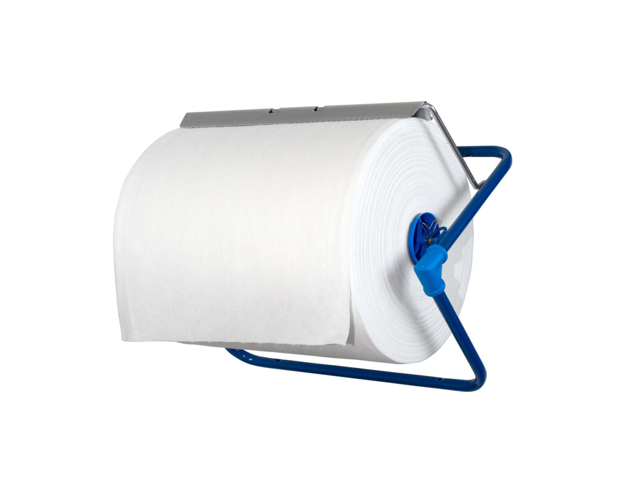 Wandhalter Metall, blau lackiert Industrierollen-Spender mit Abrissschiene, zur Wandmontage. Geeignet für maximale Rollenbreite von 400 mm und 400 mm Durchmesser. Mit ABS-Kunststoff-Konus für alle Hülsengrößen. Produkteigenschaften Maße: H 390 x B 520 x T 270 mm Material: Metall, lackiert Farbe: blau VE: 1