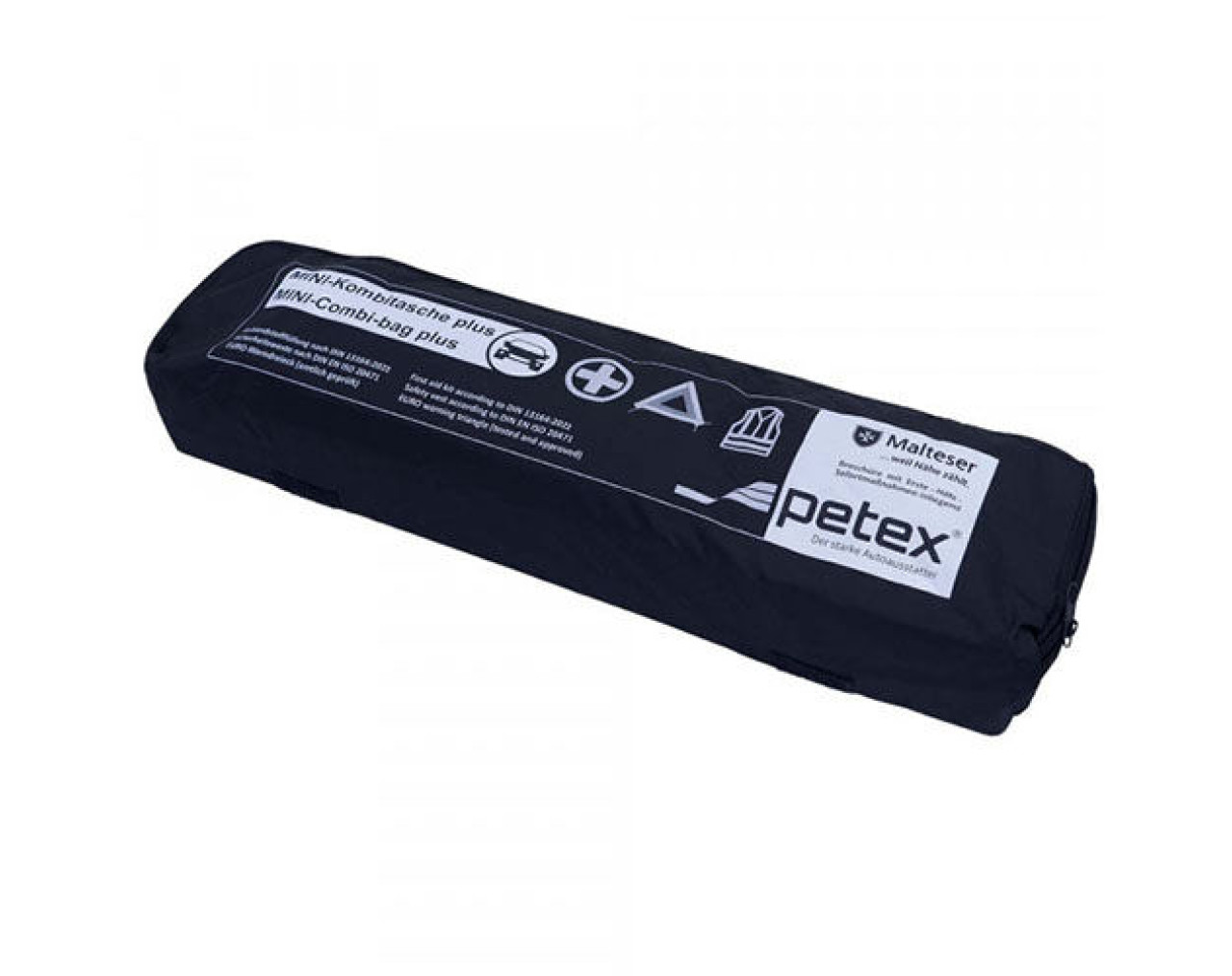 PETEX Kombitasche Plus, schwarz, bestehend aus Verbandstofffüllung, Warndreieck und Sicherheitsweste Die Kombitasche plus von PETEX beinhaltet neben einem Warndreieck und Verbandmaterial nach DIN 13164:2022 zusätzlich eine Sicherheitsweste und eine Broschüre mit Erste-Hilfe-Hinweisen. Damit haben Sie alle notwendigen Utensilien für den Fall eines Unfalls immer schnell griffbereit. Die praktische Tasche mit Klett zur Befestigung lässt sich zudem optimal im Auto verstauen und Sie haben alles kompakt beisammen. Vorteile inklusive Klett zur einfachen Befestigung Verbandmaterial nach DIN 13164 EURO-Warndreieck, amtlich geprüft Sicherheitsweste hergestellt aus strapazierfähigem Nylon-Gewebe Produkteigenschaften Farbe: schwarz Material: Nylon-Gewebe Maße: 440 x 75 x 90 mm VE: 20 Stk
