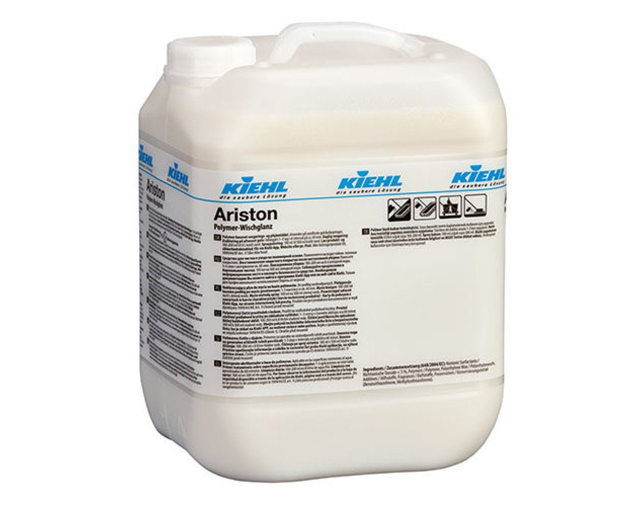 Kiehl Ariston Polymer-Wischglanz, 10 Liter Kanister Vorteile Wischpflege-Konzentrat auf Polymerbasis gute Reinigungswirkung mit erhöhtem Pflegeanteil auch unverdünnt zur Basispflege anzuwenden hinterlässt einen selbstglänzenden, schmutzabweisenden und rutschhemmenden Pflegefilm Anwendung Vor der Erstanwendung ist die Materialverträglichkeit an unauffälliger Stelle zu überprüfen. Beschichten: Je nach Saugfähigkeit der Fläche 1‒3 Aufträge im Abstand von ca. 60 Minuten. Nach erfolgter Grundreinigung und kurzer Trocknungszeit, Produkt unverdünnt z. B. mit einem Flachmopp oder Wischwiesel dünn auftragen. Verbrauch: 25,0 ml/m². Unterhaltsreinigung (Wischen): Je nach gewünschtem Pflegeeffekt 100‒200 ml zu 8 L kaltem Wasser. Verbrauch: 0,4‒0,7 ml/m². Spray-Cleanern: 100 ml zu 500 ml kaltem Wasser. Mit einer Sprühflasche und Poliermaschine (150 - 1000 U. p. M) verarbeiten. Verbrauch: 1,0 ml/m². Hinweise: Für die nicht sachgemäße oder nicht fachgerechte Anwendung und daraus entstehende Schäden kann keine Haftung übernommen werden. Kein Verbraucherprodukt nach 1999/44/EG Art. 1! Produktzusammensetzung (nach 648/2004/EG) Nichtionische Tenside < 5 %, Polyethylenwachse, Polymere, Additive, Duftstoffe, Konservierungsmittel (Sodium Pyrithione, Benzisothiazolinone). pH-Wert (Konzentrat): ca. 8,5 Produkteigenschaften Gebindegröße: 10 Liter Kanister Aggregatzustand: flüssig Geruch: angenehm Farbe: milchig pH-Wert (bei 20 °C): ca. 8,5 VE: 1 Kanister VE Palette: 60 Kanister Pflichthinweise Das Gemisch ist nicht als gefährlich eingestuft im Sinne der Verordnung (EG) Nr. 1272/2008 [CLP].