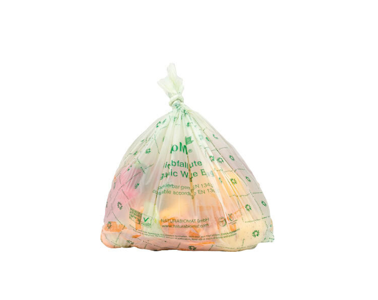BIOMAT Bioabfallbeutel 30 Liter, 10 Stück auf Rolle Kompostierbare Abfallbeutel von bioMat, auf Maisstärke-Basis. Vorteile kompostierbar mit Banderole zertifiziert nach EN 13432 Produkteigenschaften Inhalt: 30 Liter Maße: 530 x 600 mm Typ: normal Farbe: Standarddruck grün Zugband: nein Tragegriff: nein VE: 50 Rollen / 10 Beutel pro Rolle