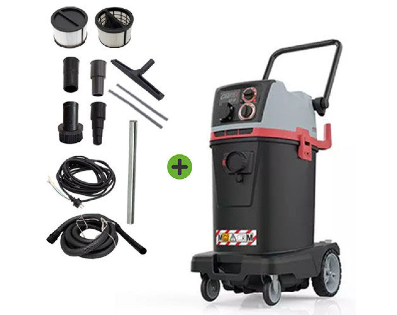 Sprintus CraftiX 50M Industriesauger für Stäube der Staubklasse M Holzstäube, Lackstäube oder sonstige Stäube – die beiden Sicherheitssauger CraftiX 35 M und 50 M saugen gesundheitsgefährdende Stäube der Staubklasse M ab, bevor sie in die Atemluft gelangen. Durch die serienmäßige Antistatik-Ausstattung eignen sich die beiden M-Sicherheitssauger hervorragend zum Absaugen großer Mengen Feinstaub direkt am Elektrowerkzeug. Für gefährliche Stäube der Staubklasse M mit automatischer Filterabreinigung und erweitertem Warnsystem. Jeikner-Tipp: Die Berufsgenossenschaft der Bauwirtschaft unterstützt ihre Mitglieder beim Kauf eines SPRiNTUS Sicherheitssaugers der Staubklasse M mit der Übernahme von bis zu 375 Euro* bzw. maximal 50 Prozent des Nettorechnungspreises. Weitere Informationen finden Sie auf der Webseite der BG BAU. *Die BG BAU-Förderung bezieht sich auf die Sicherheitssauger der Staubklasse M und richtet sich ausschließlich an BG BAU-Mitglieder in Deutschland. Vorteile praktische Kabelhaken für einen komfortablen Transport leicht zu reinigender Ausblasfilter Parkposition für extra breite Bodendüse Feststellbremsen verhindern ein ungewolltes Wegrollen des Saugers robuste, umlaufende Stoßkanten patentierter Patronenfilter einstellbarer, klappbarer Schiebebügel für einen einfachen Transport ebene Oberfläche am Motorkopf mit versenkbarem Tragegriff zum Montieren der optionalen Adapterplatte für Werkzeugkoffer Maxi-Fahrwerk, extragroß, baustellentauglich WARNUNG: Dieses Gerät enthält nach Nutzung gesundheitsgefährliche Stäube. Entleerung und Wartung, einschließlich der Entfernung des Staubbeutels, dürfen nur von sachkundigen Personen vorgenommen werden, die geeignete Schutzausrüstung tragen. Nicht einschalten, bevor das komplette Filtersystem installiert ist und die Funktion der Volumenstromkontrolle überprüft wurde. Mit diesem Gerät können alle Arten von Stäuben bis Staubklasse M aufgesaugt werden. Die Verwendung eines Staubsammelbeutels ist gesetzlich vorgeschrieben. Lieferumfang Edelstahl-Saugrohre 2 x 0,5 m mit Ø 38 mm antistatischer und ölbeständiger Saugschlauch 5 m mit Ø 35 mm antistatischer und ölbeständiger Saugschlauch 2,5 m mit Ø 38 mm Fugendüse, Rundpinsel Trockenbodendüse 450 mm HEPA 13 Patronenfilter Vliesfiltertüte Entsorgungsbeutel Gummi-Netzkabel: H07RNF, 10 m, schwarz Elektrowerkzeugadapter Ø 21 / 25 / 32 / 35 mm Technische Daten Netzspannung: 220-240 V / 50-60Hz Leistung: 1200 W Schalleistungspegel: LpA 75 dB Max. Unterdruck: 250 hPa / mbar Volumenstrom: 74 Liter/Sek. Belältervolumen: 50 Liter Gewicht: 19,5 kg Material: Kunststoff Abmessungen (L x B x H): 54 x 39 x 77 cm VE: 1 Herstellervideo zum Sprintus CraftiX 50M