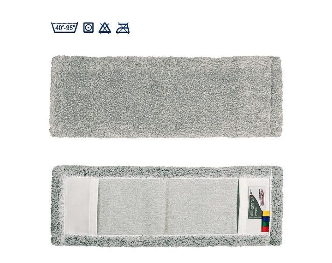 Sprintus Delphin Mikrofaser-Mopp mit grauen Fasern, für die professionelle Gebäudereinigung Der weiß-graue Delphin Profimopp aus Mikrofaser sieht auch nach vielen Waschgängen noch immer wie neu aus! Dies lässt sich nicht nur auf die grauen Fasern zurückführen, sondern auch auf die hochwertige Verabeitung des Profi-Wischbezugs. Vorteile Delphin Mopp grau gehaltene Fasern lassen den Bezug nach dem Einsatz und nach der Wäsche wie neu aussehen hervorragende Verarbeitung extra starke, aufgepolsterte und wasserdurchlässige Taschen 4-Farbcodierung Der Sprintus Delphin Mikrofasermopp ist in folgenden Ausführungen erhältlich: 40 cm 50 cm Hinweis: Nicht bleichen und nicht bügeln. Produkteigenschaften Erhältliche Größen: 40 cm; 50 cm Material: 100 % Polyester Gewicht: 40 cm = ca. 85 gr. 50 cm = ca. 105 gr. Einsatzbereiche: universelle Reinigung Bodenbeläge: glatte bis strukturierte Oberflächen Halter-Art: Klapphalter Befestigungsart: Taschen Waschbarkeit: bis 95°C Trocknergeeignet: ja Farbcodierung ja Farbe: weiß/grau Logo-Aufdruck möglich? ja VE: 75 Stk. (40 cm) 50 Stk. (50 cm)