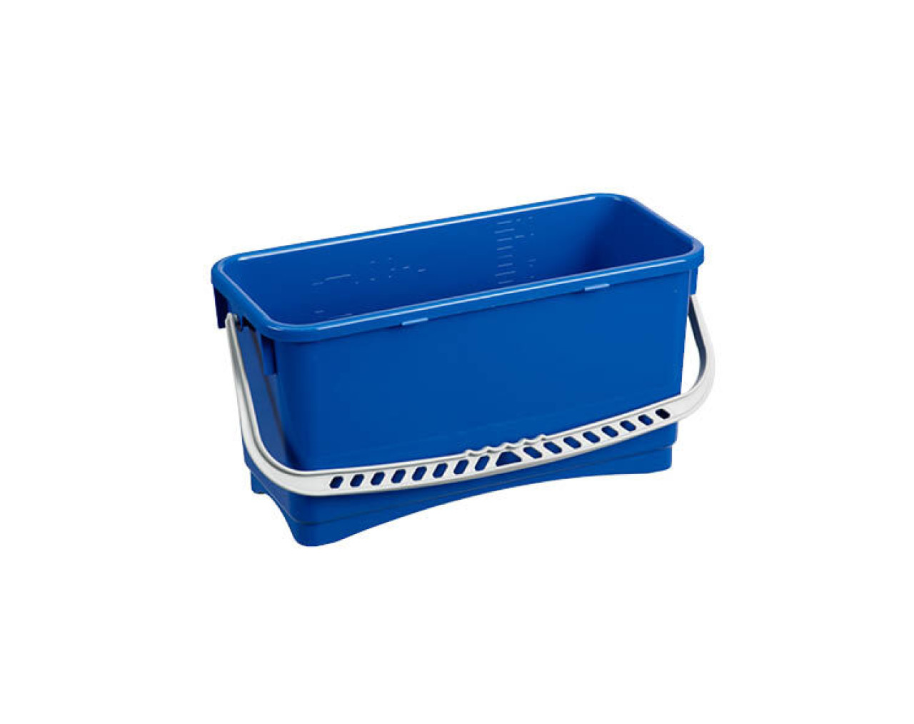 20 Liter Kunststoffeimer Der Mehrzweckeimer mit Plastikhalter für Flachpressenwagen, Fensterwischer u.a. Vorteile ergonomischer Kunststoffgriff Entleeren des Eimers wird durch den unteren Schutzrand erleichtert leicht, stoßfest, strapazierfähig und kältebeständig dank hochwertigem Polypropylen-Copolymer PSV (Second Life Plastic) - zertifiziertes Produkt aus recyceltem Kunststoff Der Kunststoffeimer mit 20 Liter Volumen ist in folgenden Ausführungen erhältlich: blau rot Produkteigenschaften Maße (L x B x H): 55 x 24 x 27 cm Füllmenge: 20 L Farbe: blau / rot Material: Polypropylen-Copolymer Brutto-Gewicht: 12,6 kg